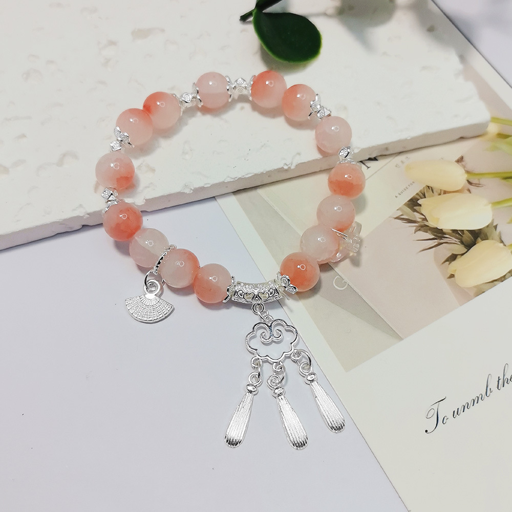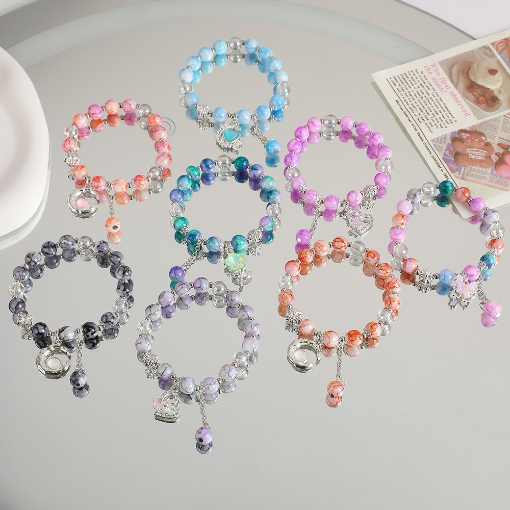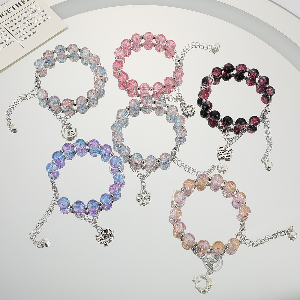 Guochao Xiangyun ペンダントガラスブレスレットインニッチアイスクラックカラービーズブレスレットスイートガールフレンドブレスレットジュエリーギフト