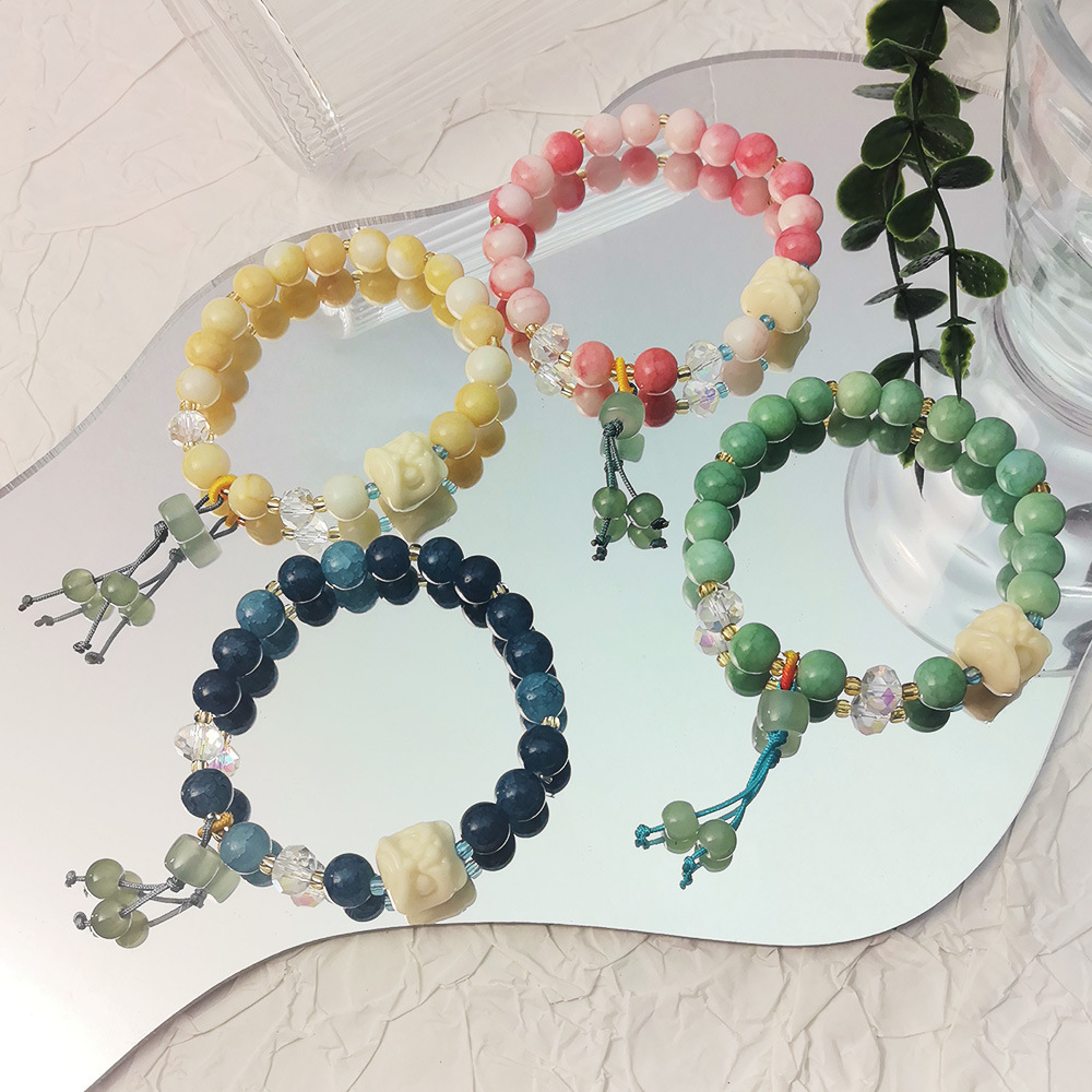 新しい中国風のライオン覚醒ビーズブレスレット、ハイエンドの天然石ブレスレット、多用途のドーパミンガールフレンドブレスレット
