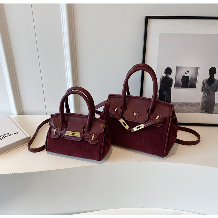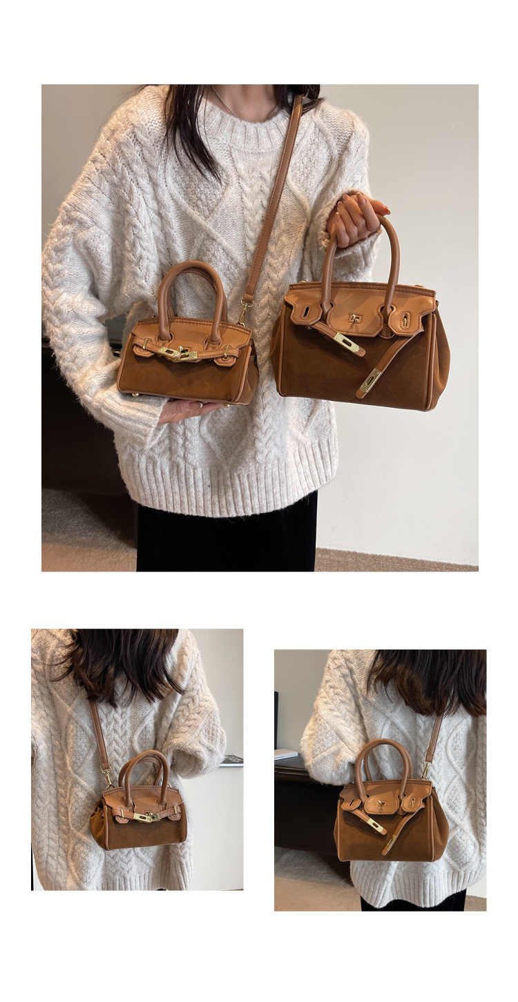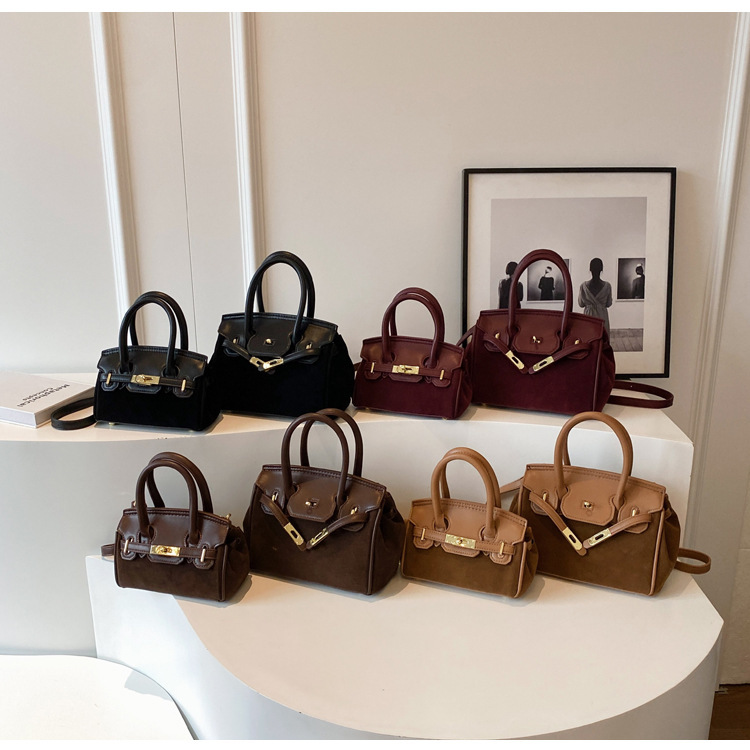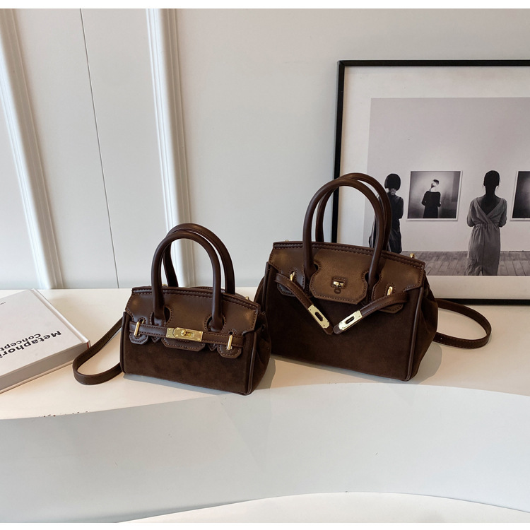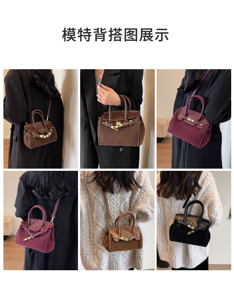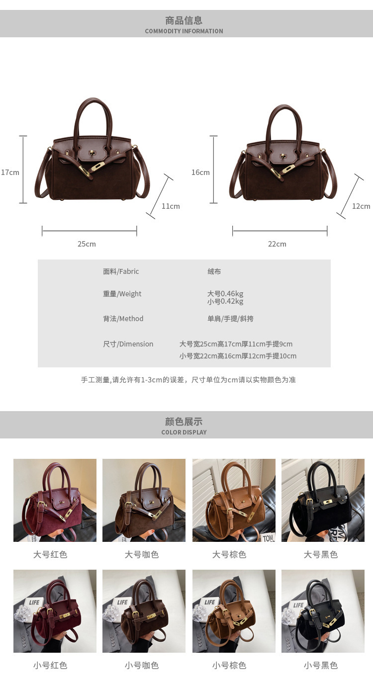女士斜挎包秋冬季节纯色麂皮绒洋气百搭美拉德色系女士单肩斜挎包