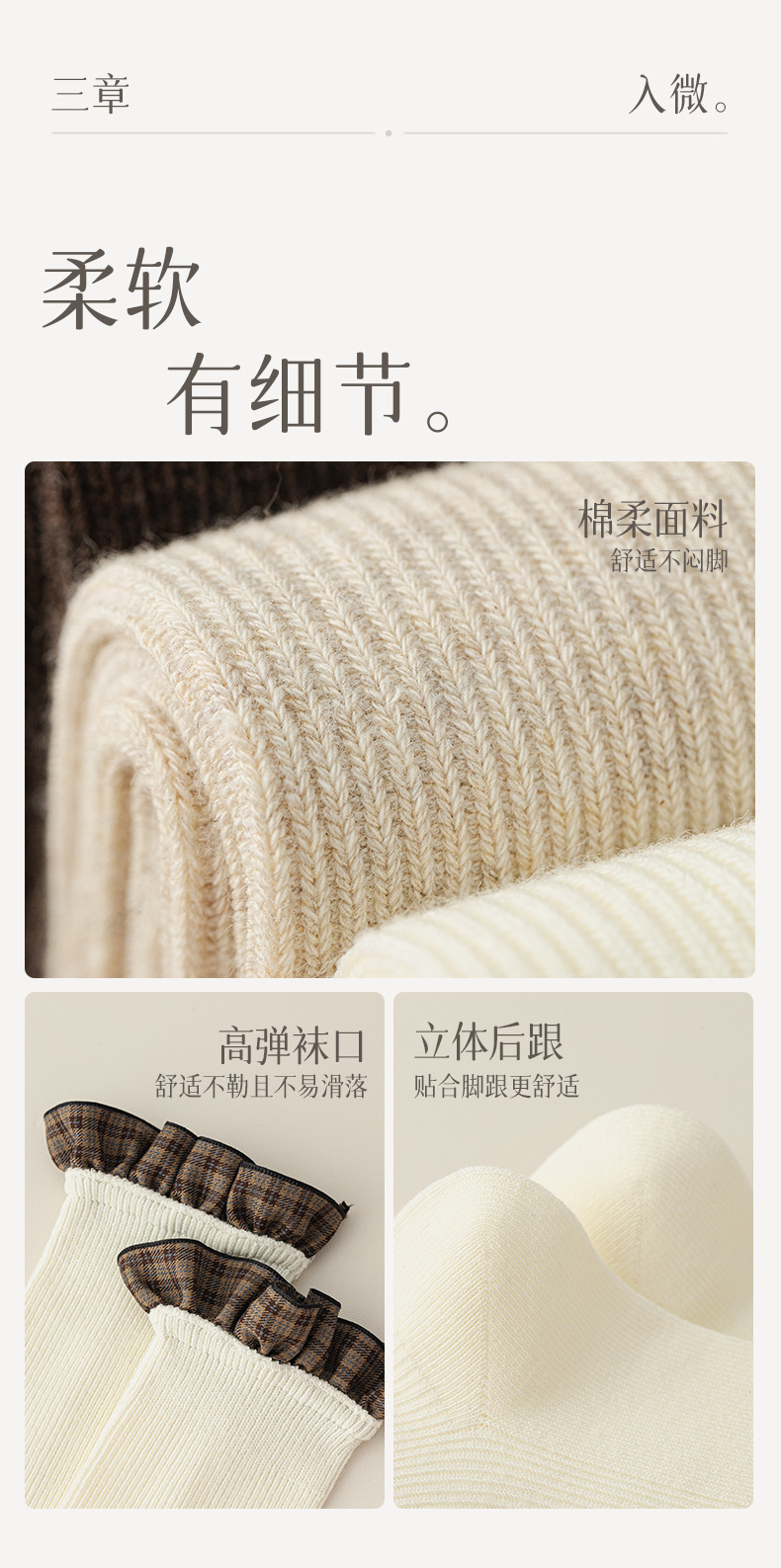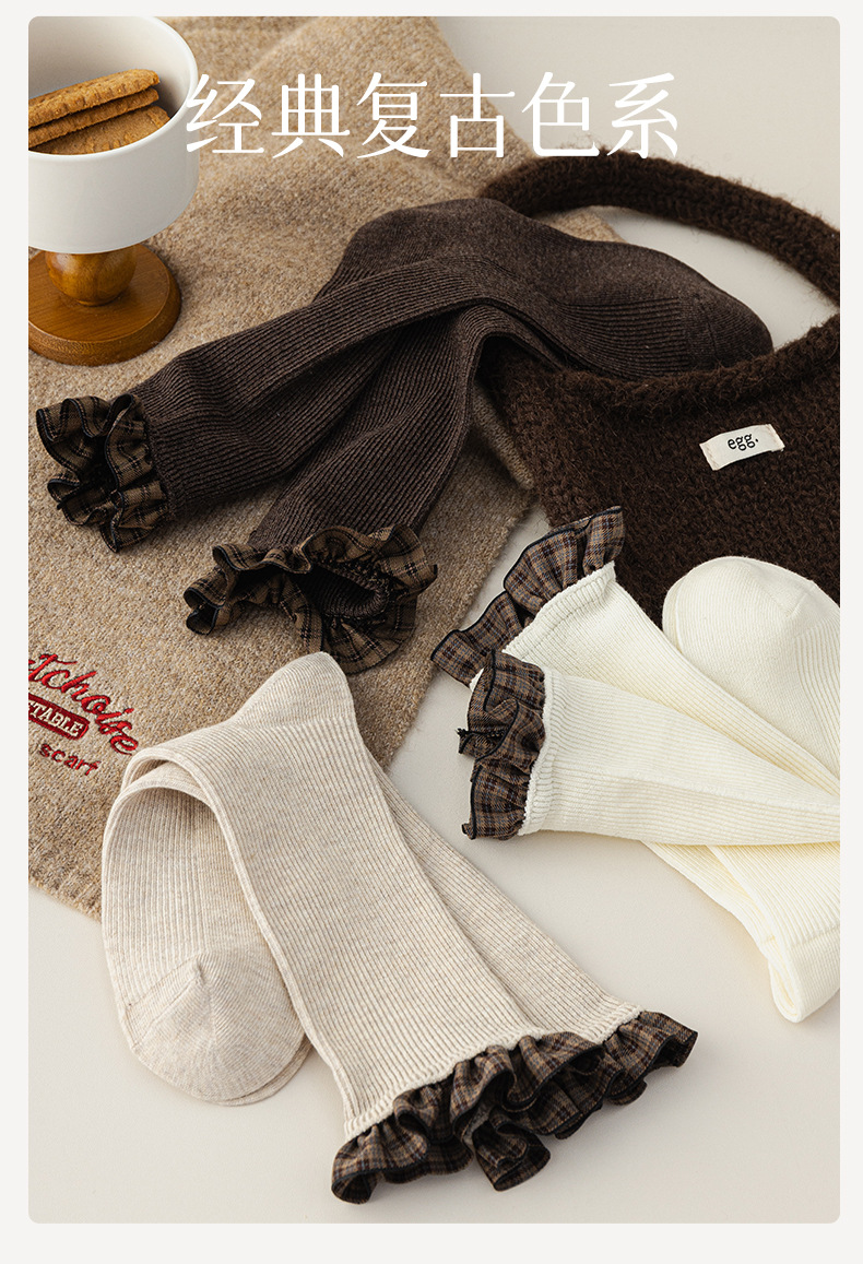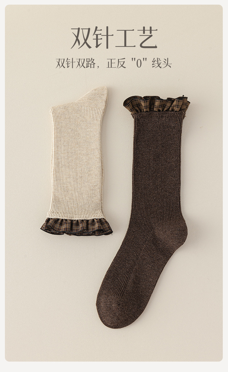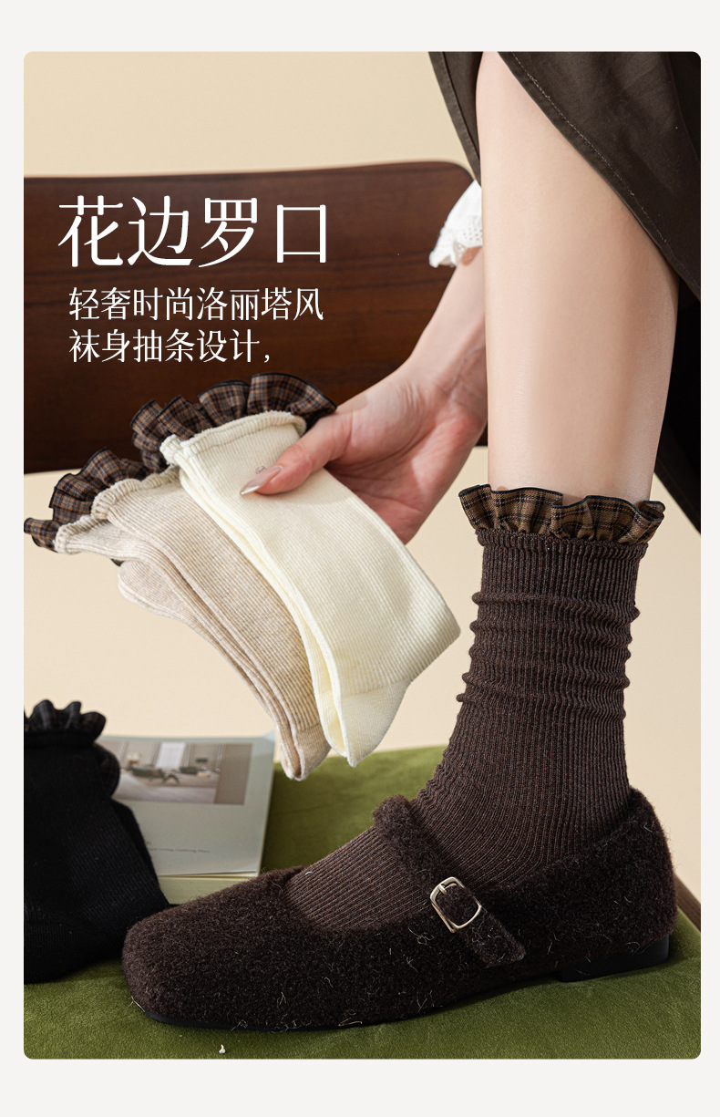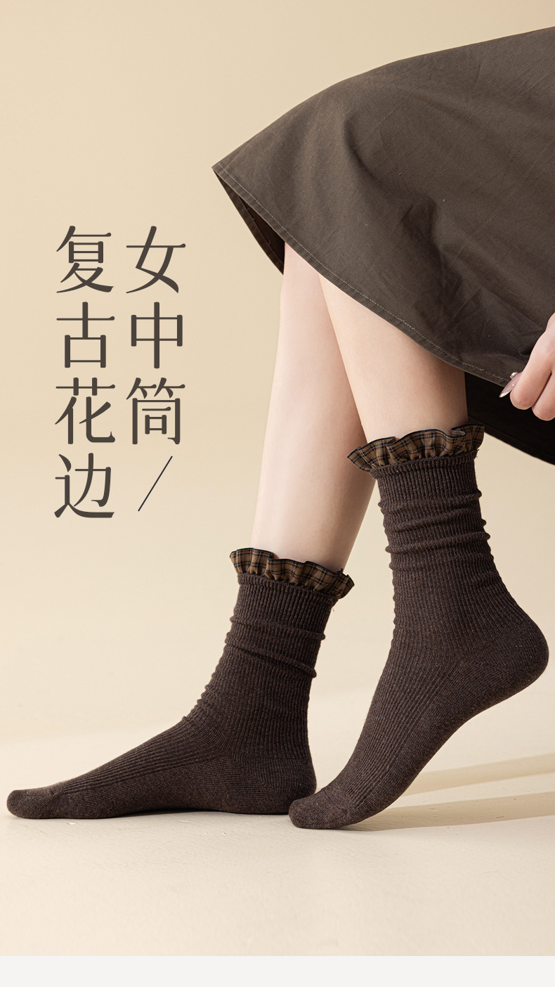 花边罗口中筒女袜秋冬复古日系轻奢洛丽塔风学院风双针双路堆堆袜