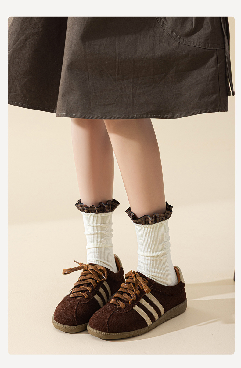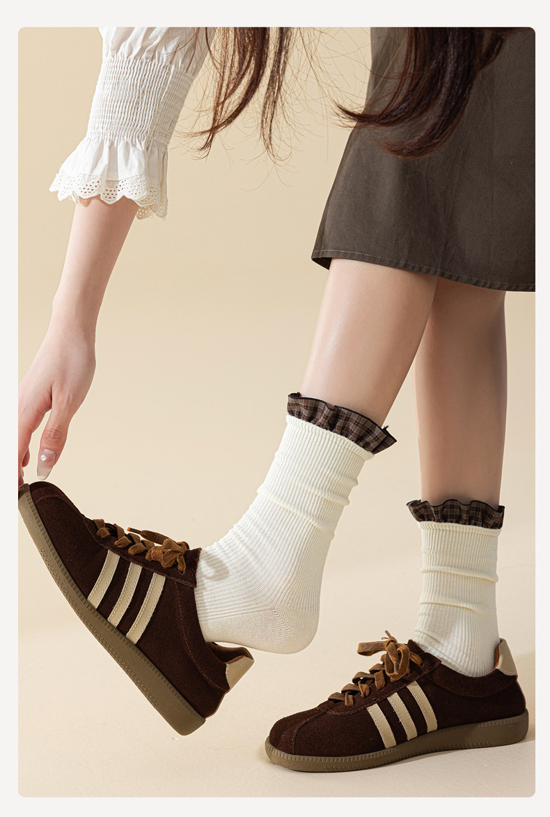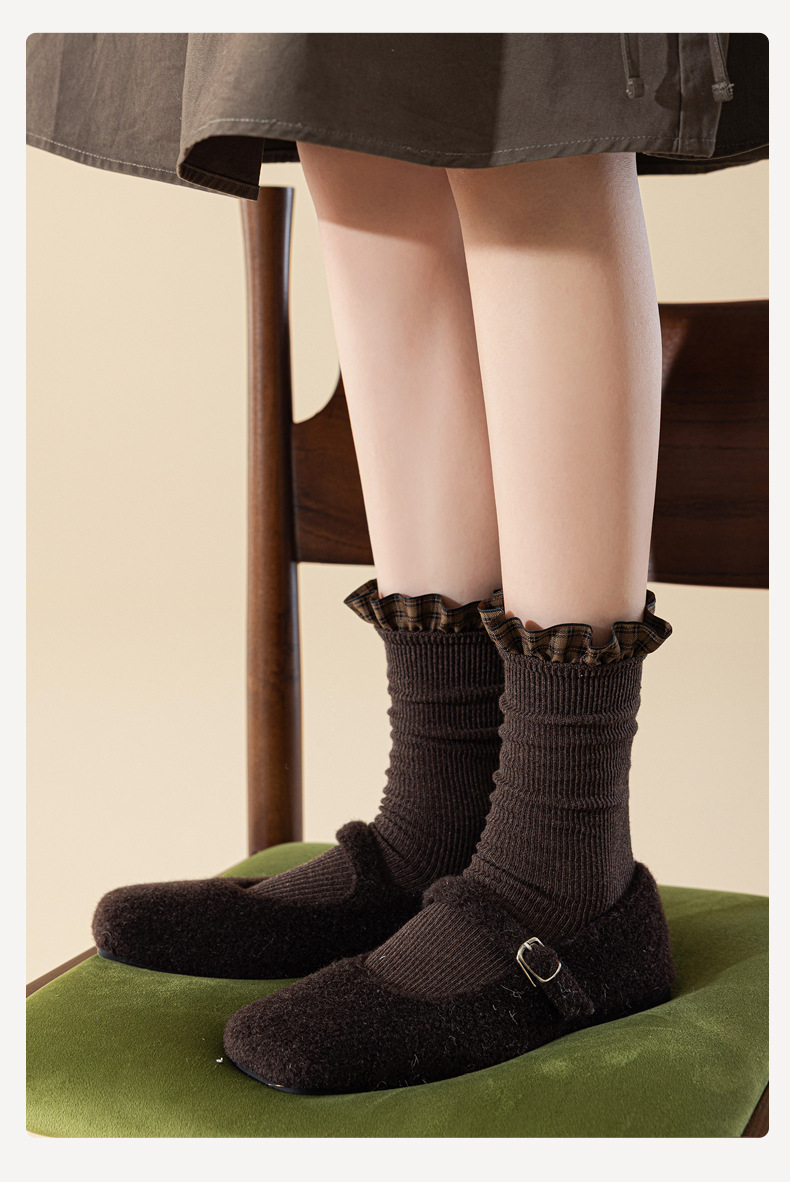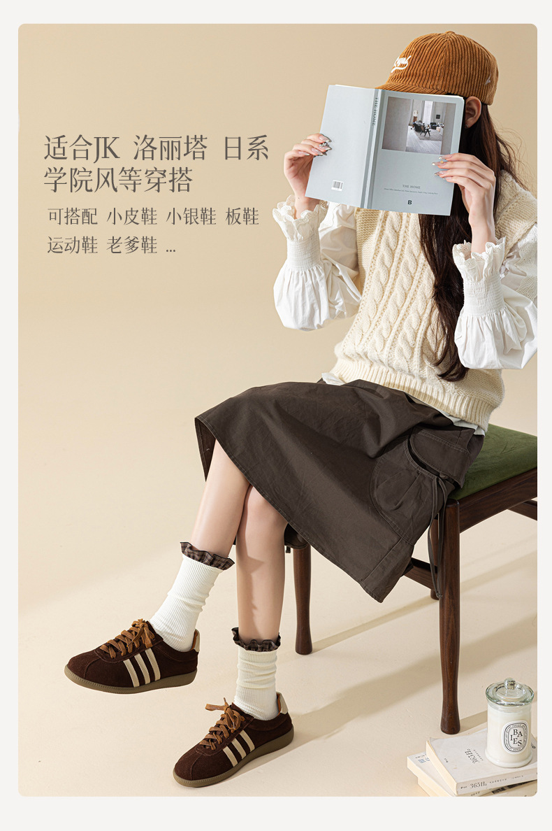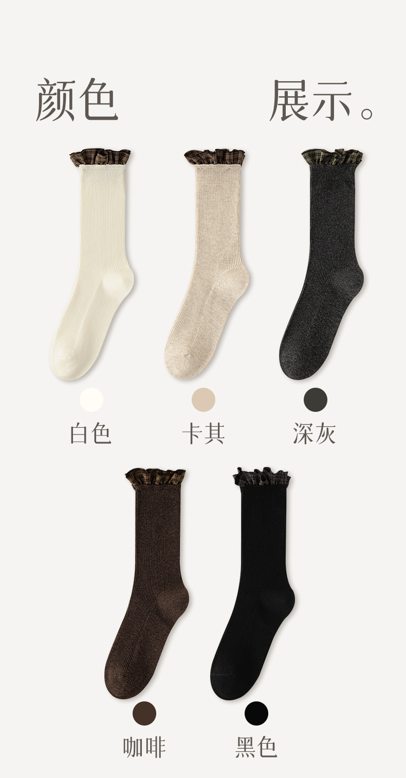 花边罗口中筒女袜秋冬复古日系轻奢洛丽塔风学院风双针双路堆堆袜