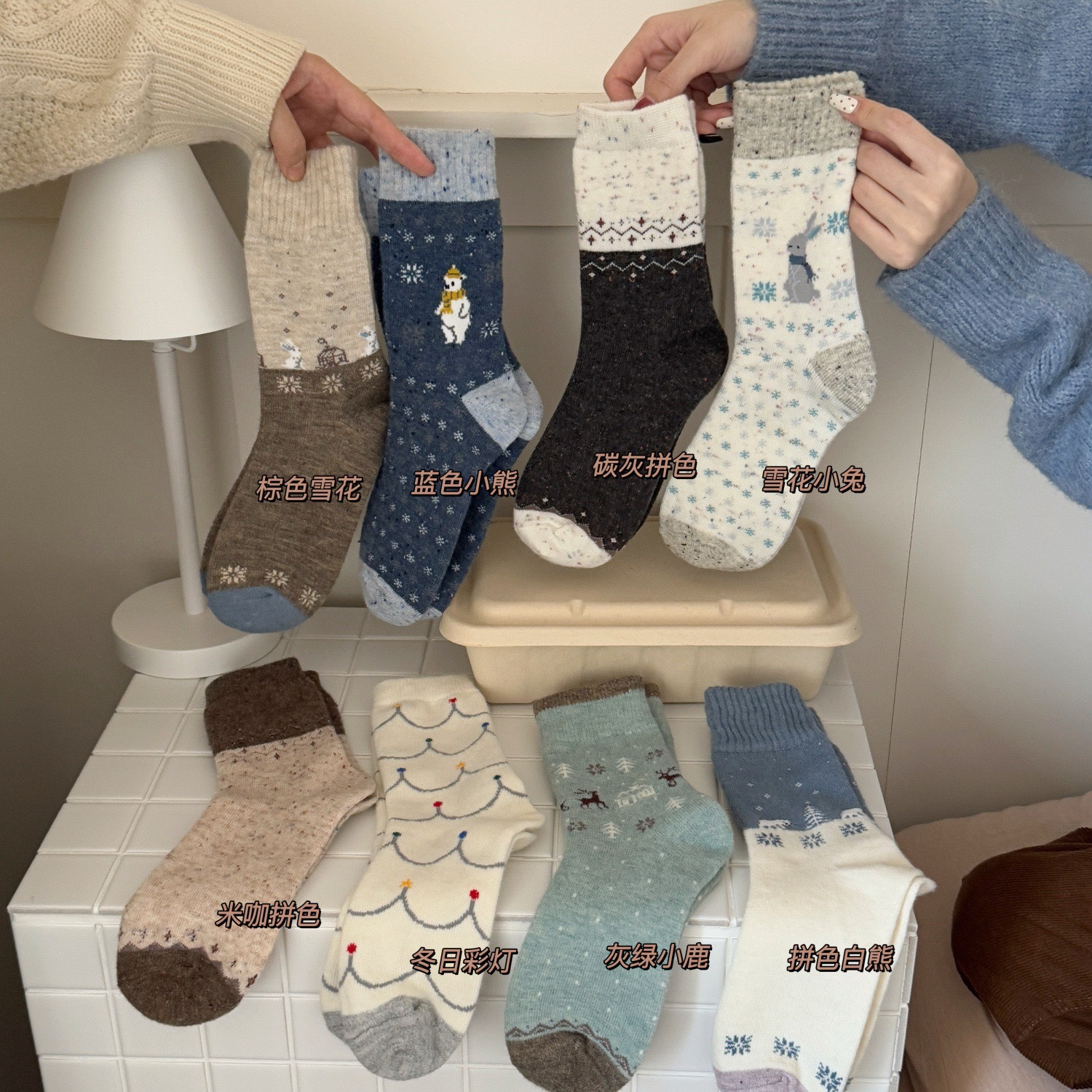 IOULOR冬天厚袜子圣诞节麋鹿软糯羊毛袜保暖加厚无骨女袜堆堆袜子