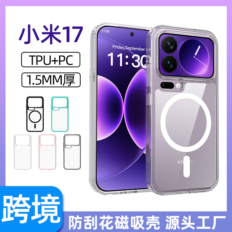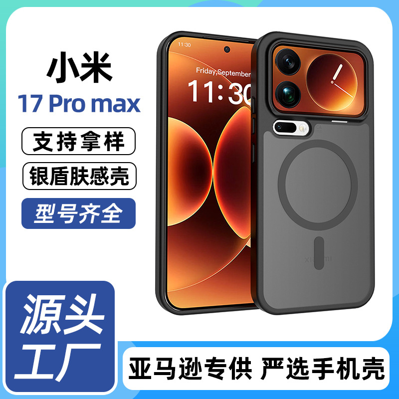 亚马逊适用小米17 Promax银盾肤感磨砂透磁吸壳 TPU+PC全包保护套
