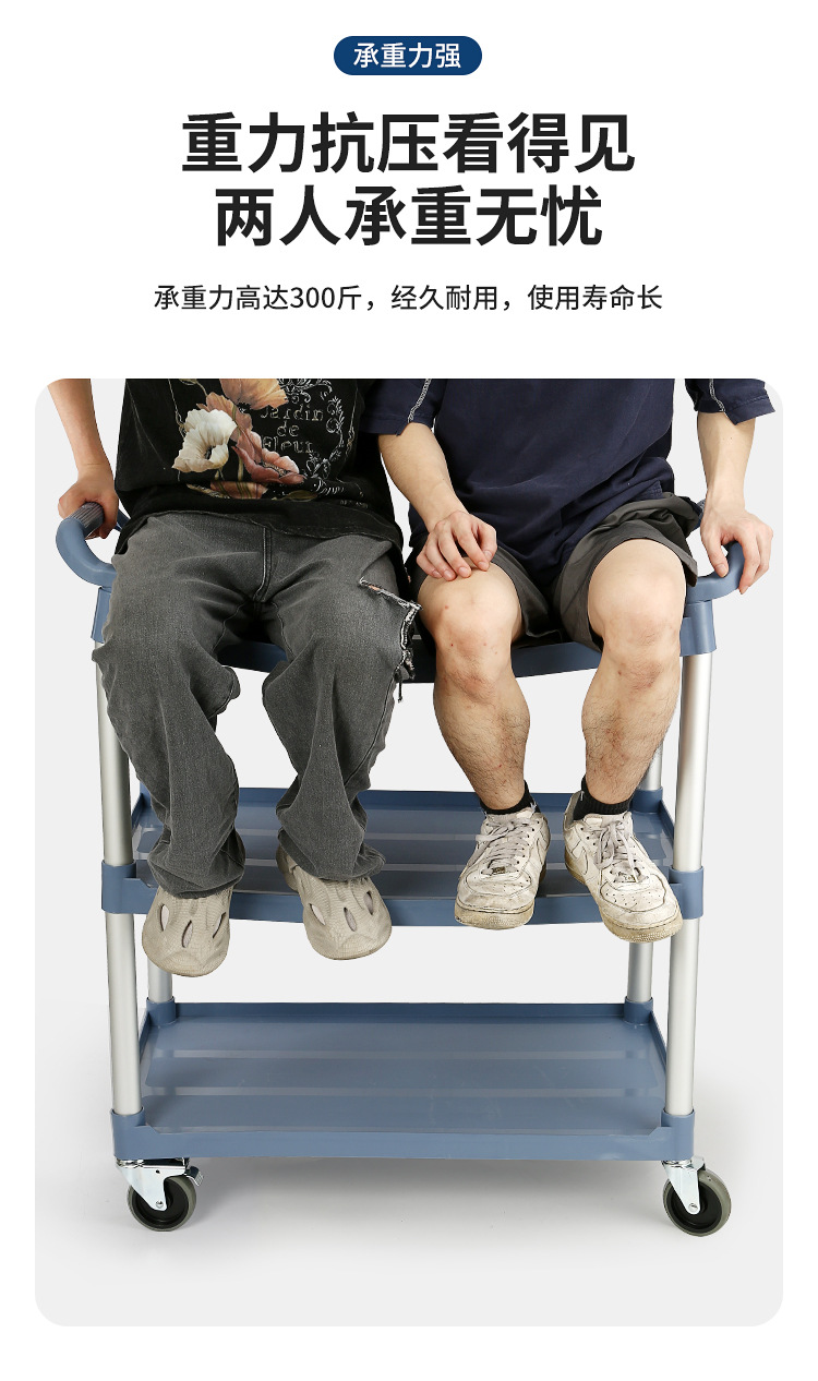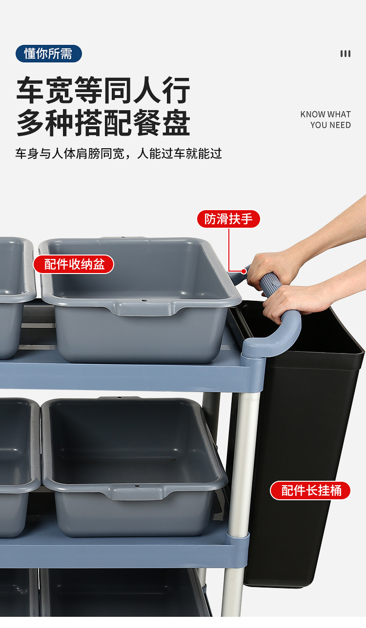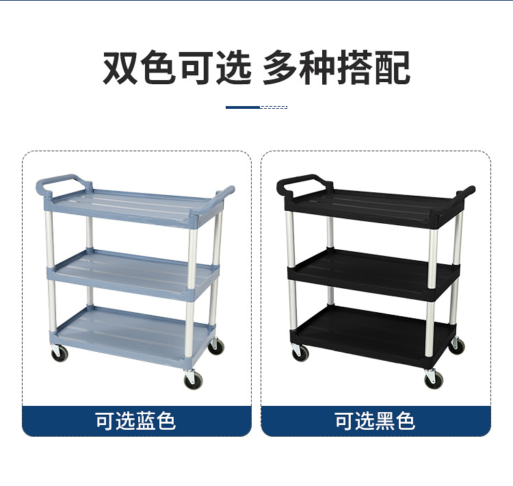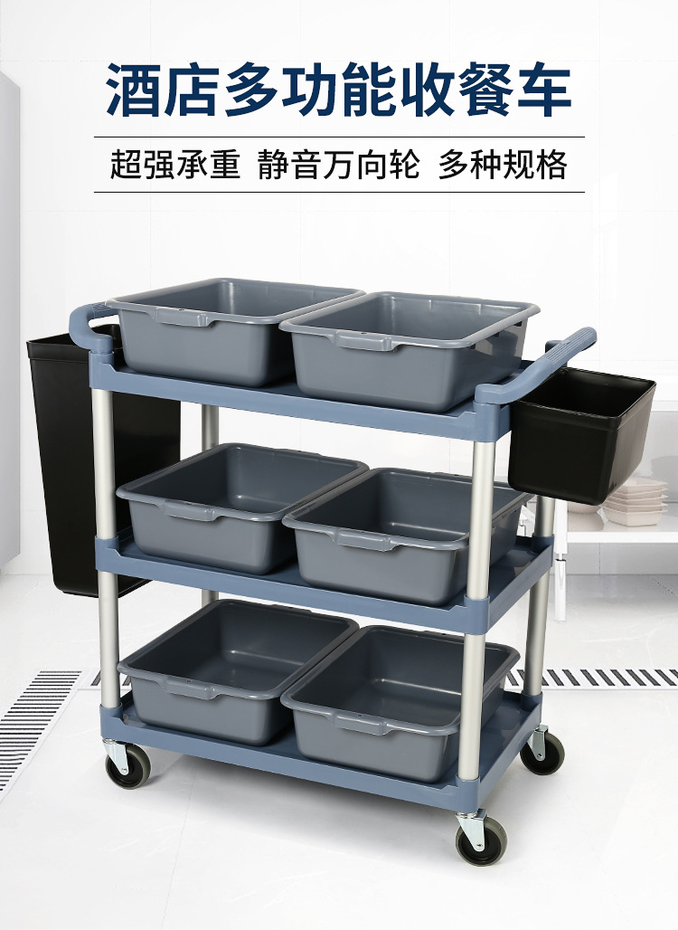 特厚三层酒店收餐车收碗车餐厅上菜小推车移动商用静音手推送餐车