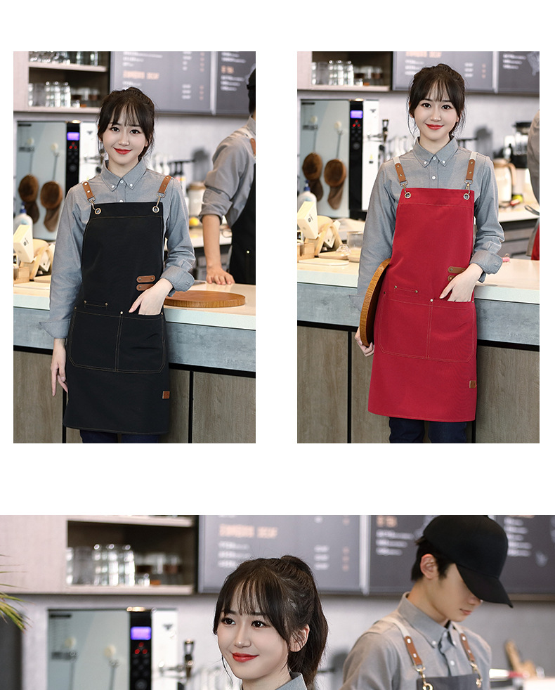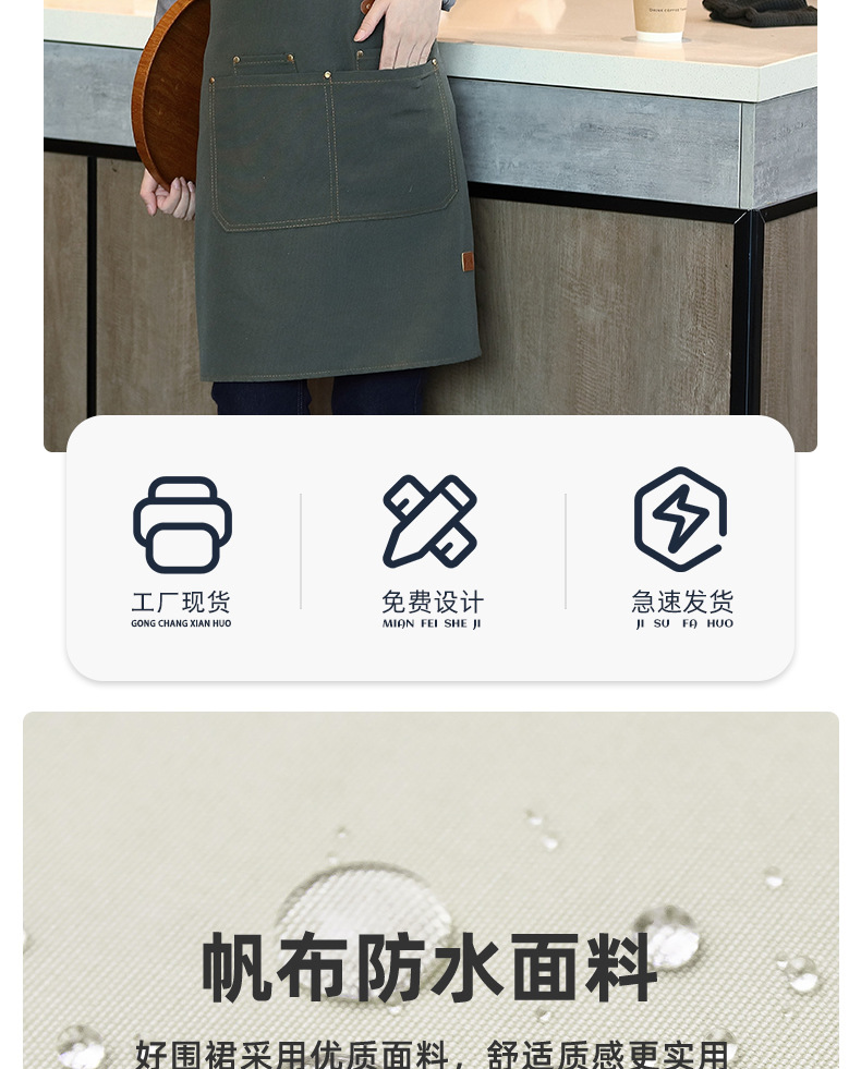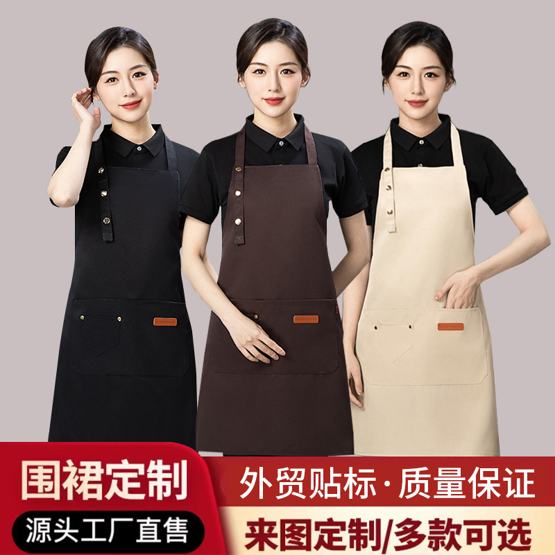 帆布围裙定制新款餐饮专用防水防油印字logo奶茶店工作服耐脏跨境