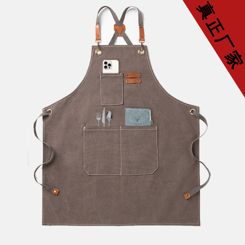 卸売りキャンバスエプロンカスタムコーヒー師ネイルサロン作業服汚れに強い園芸防水アマゾン国境を越えたスポット