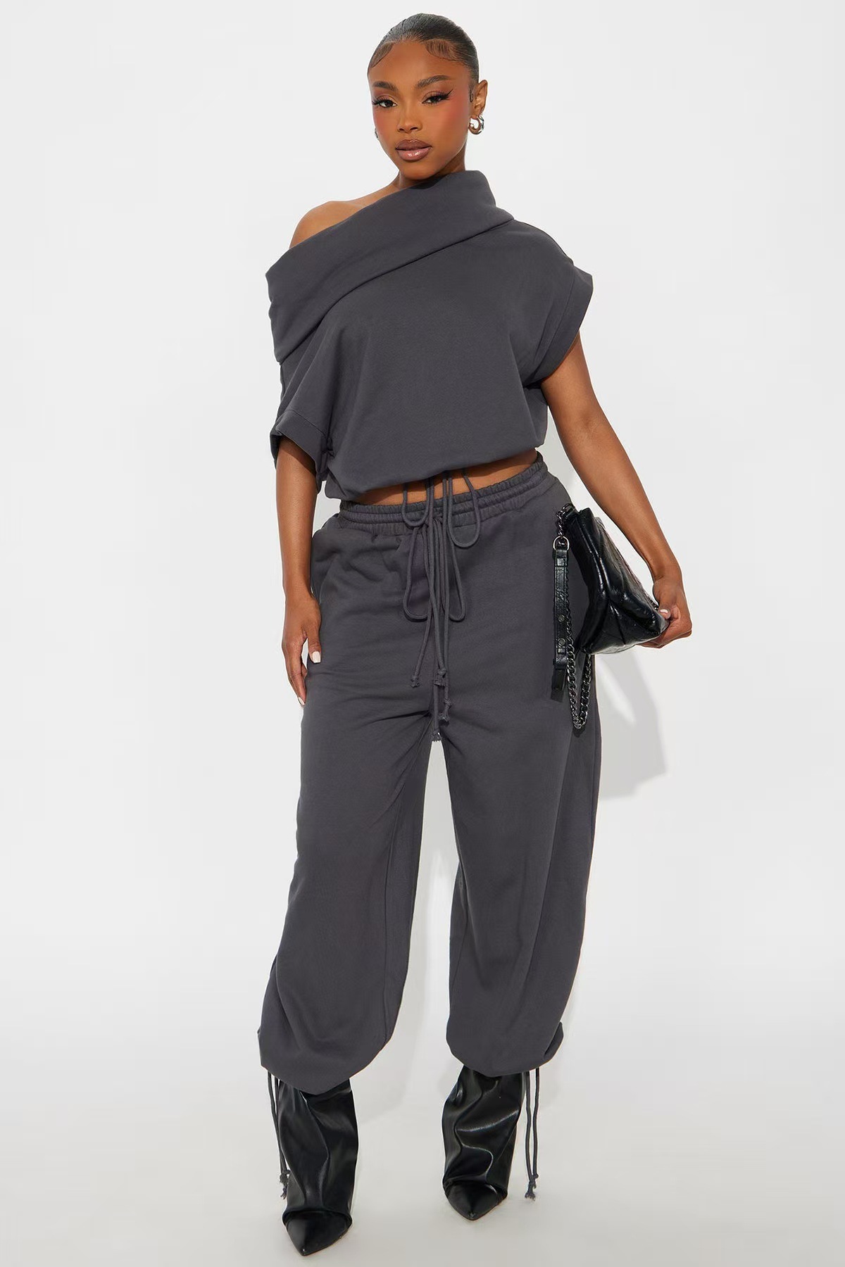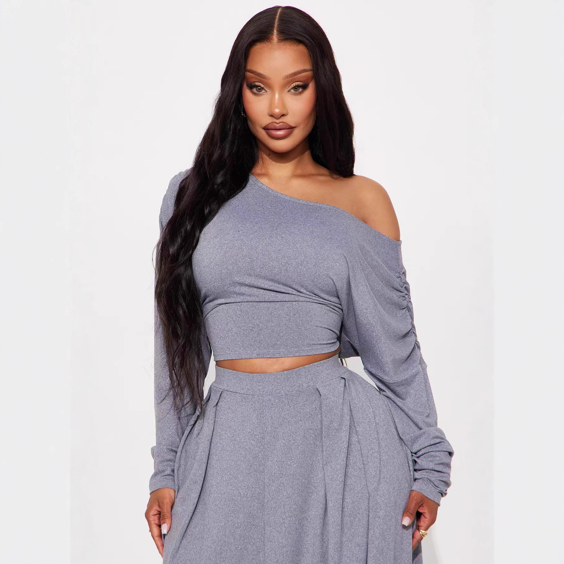跨境欧美2025春秋新款女装时尚休闲纯色长袖斜肩哈伦裤两件套