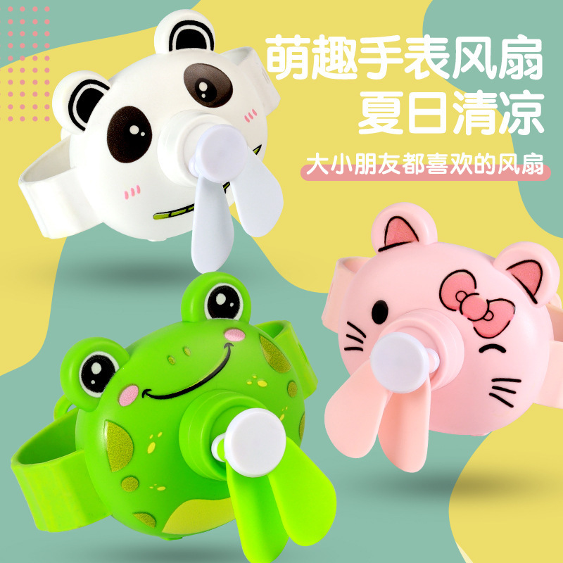 卸売りクロスボーダー乾電池ファン屋外携帯アニメは小さなファンネット赤同型児童腕時計ファンを持っている