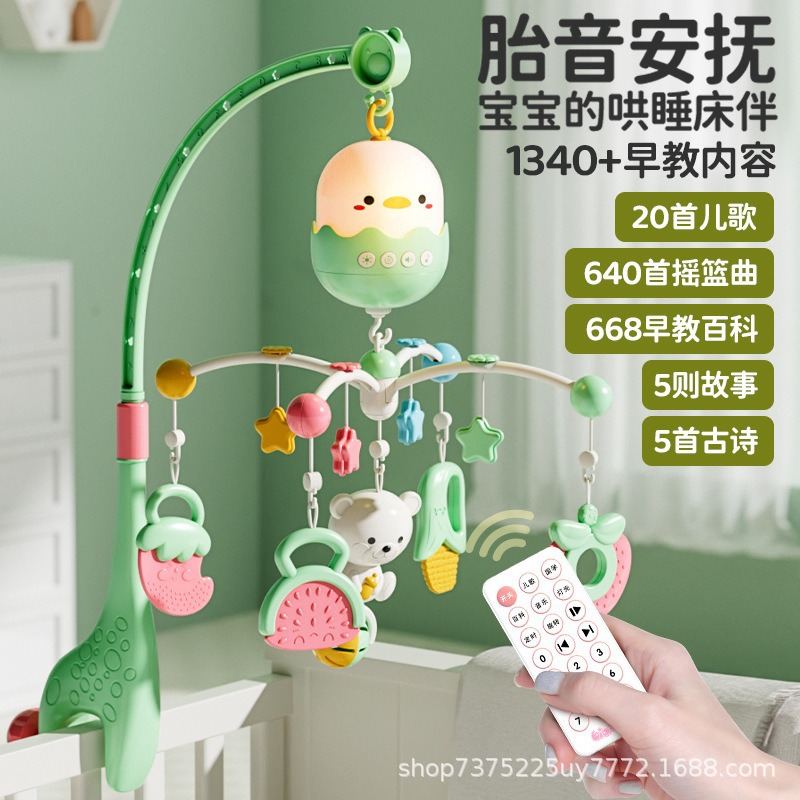 卸売りの新入生の赤ちゃんはおもちゃのベビーベッドをなだめて鈴を鳴らして寝ます。
