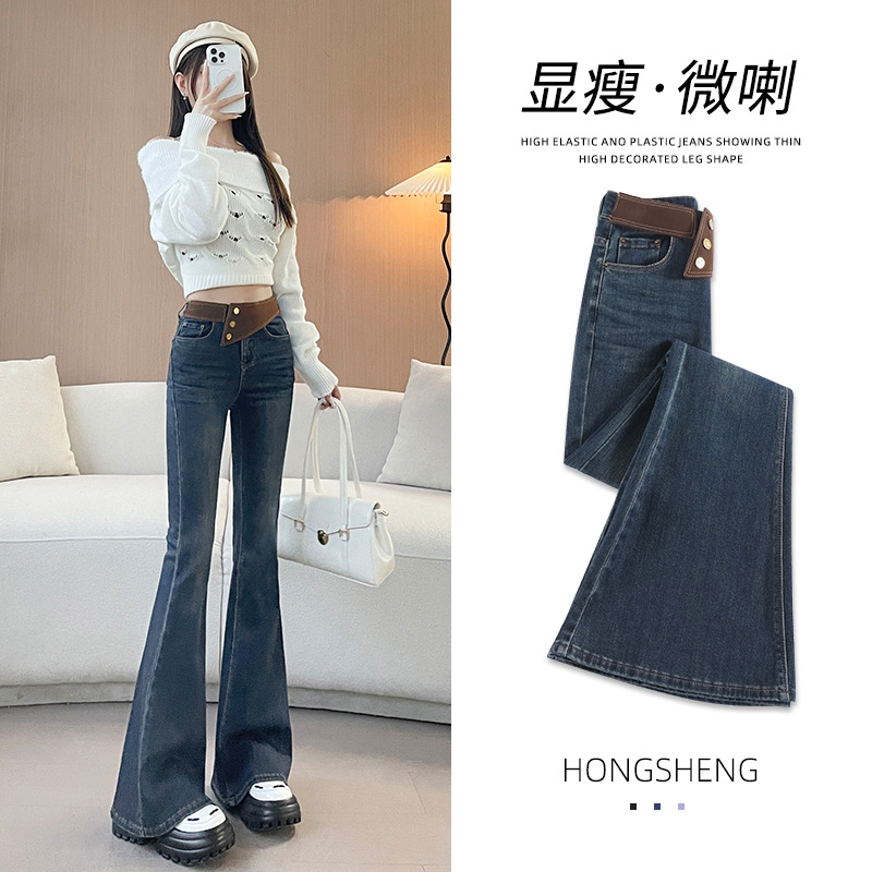 烫钻设计感微喇牛仔裤女秋季2025新款高腰修身显瘦小个子喇叭裤子