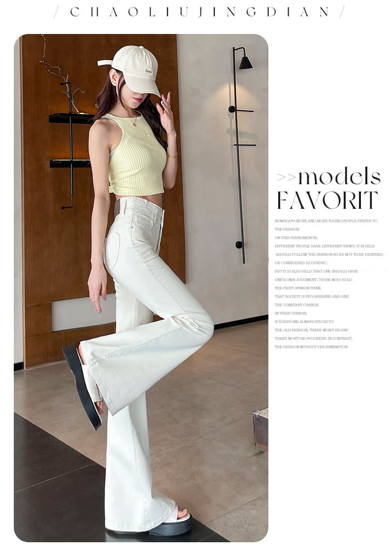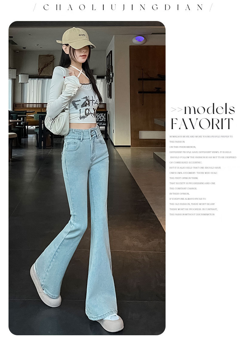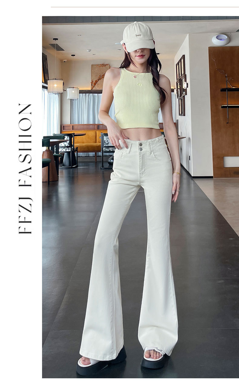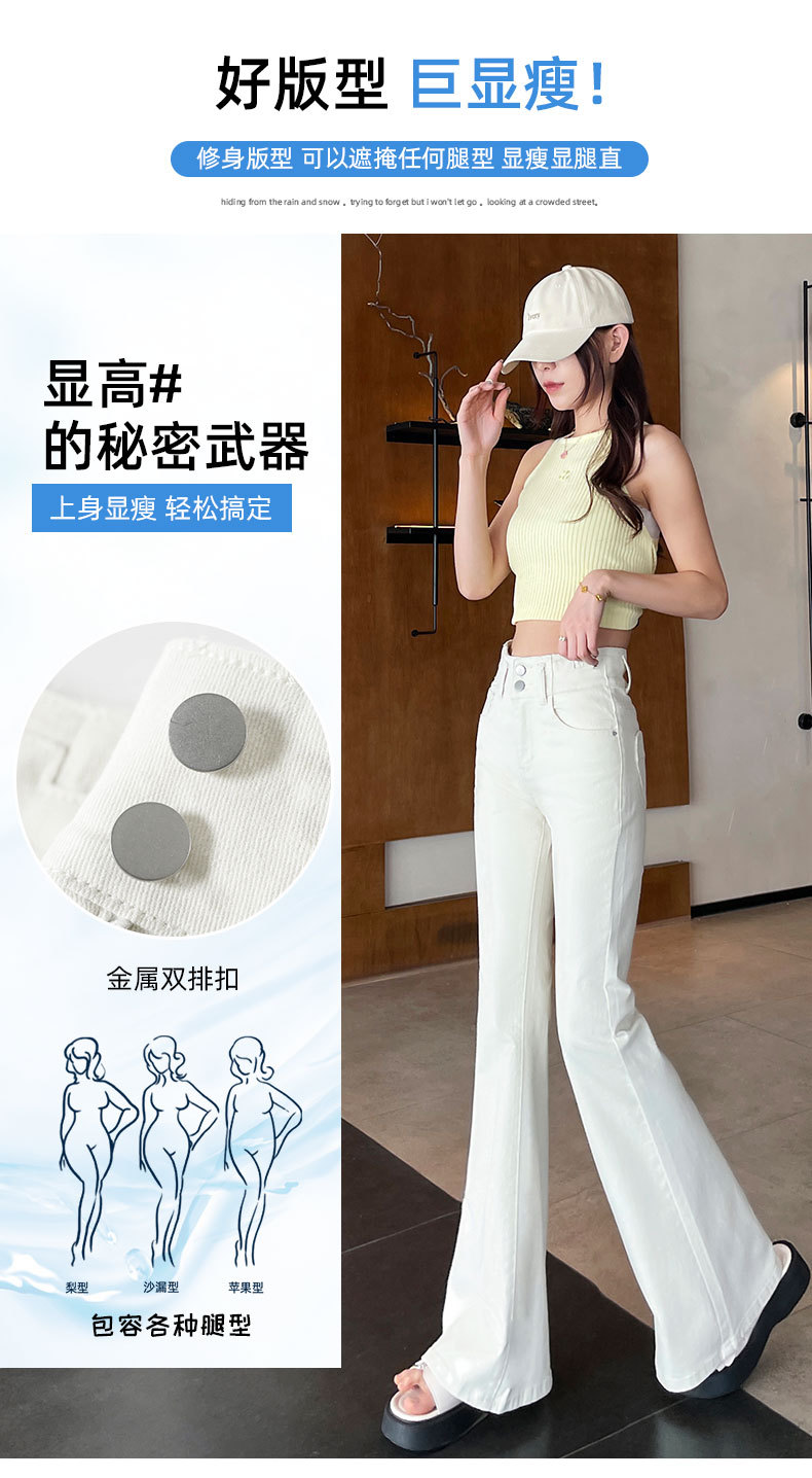 女性のためのウエストを細くし、股を広げ、長くするジーンズ 2025 新しいファッショントレンド超人気のフレアパンツライトカラーストレッチスリムパンツ