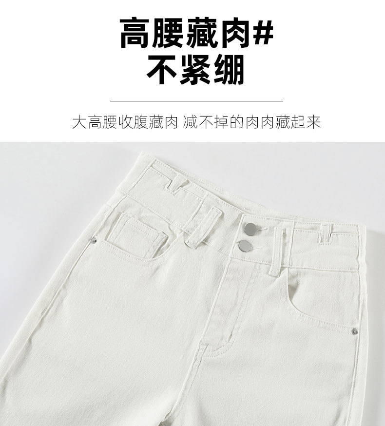 白いマイクロフレアデニムパンツ レディース 秋 2025年新作 ハイウエスト 着痩せ効果 九分丈 小柄さん向け ベルボトムパンツ レディース 秋