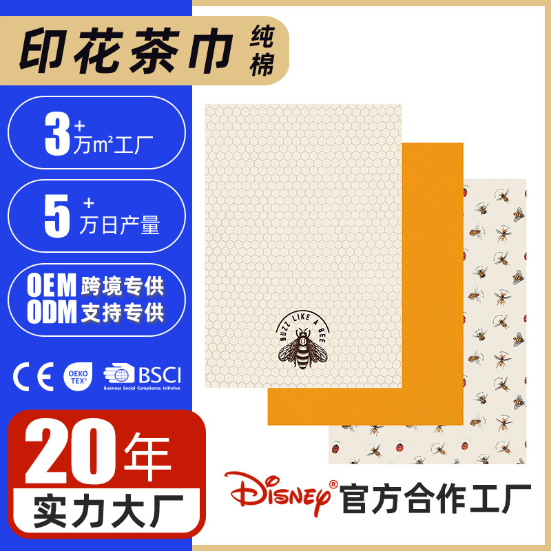 印花蜜蜂卡通轻奢棉茶巾吸水不掉色加厚厨房茶巾擦拭布食品级安全