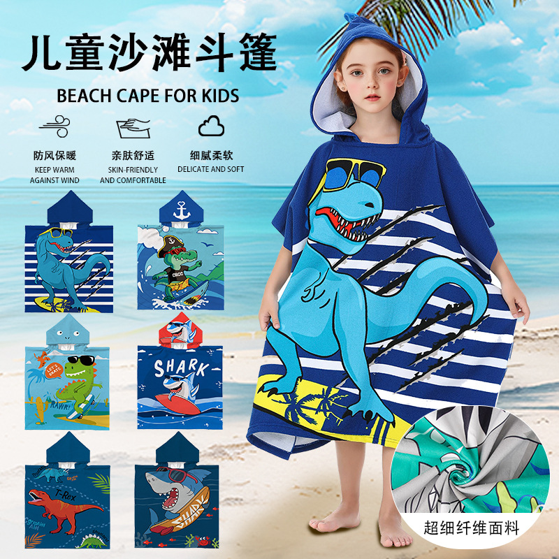 夏の屋外漫画子供着用マントバスタオルマイクロファイバープリント水泳ビーチフード付き子供バスタオル