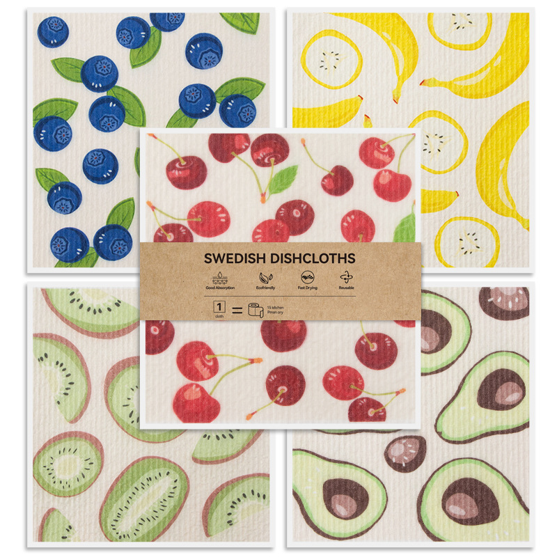 国境を越えたプリント食器用タオル卸売、増粘、油汚れを除去するたわし、ドイツの木材パルプ綿キッチン雑巾