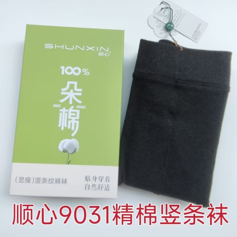 顺心9026 春秋150克细条纹不加绒打底裤袜纯色螺纹棉质连脚袜子