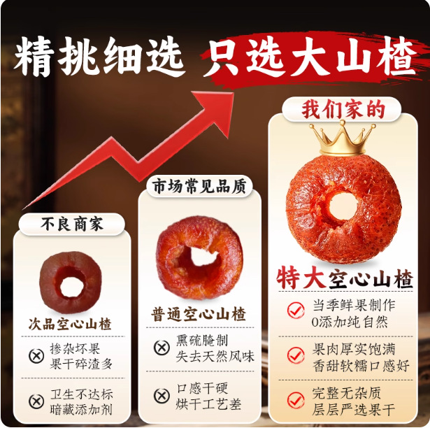 包装规格 【小包便携装】125g*1袋,精选好品质【半斤小包装】250g*1袋,特大SS+果空心山楂【净重】500g*1袋,【买的多拍这个便宜】500g*2袋