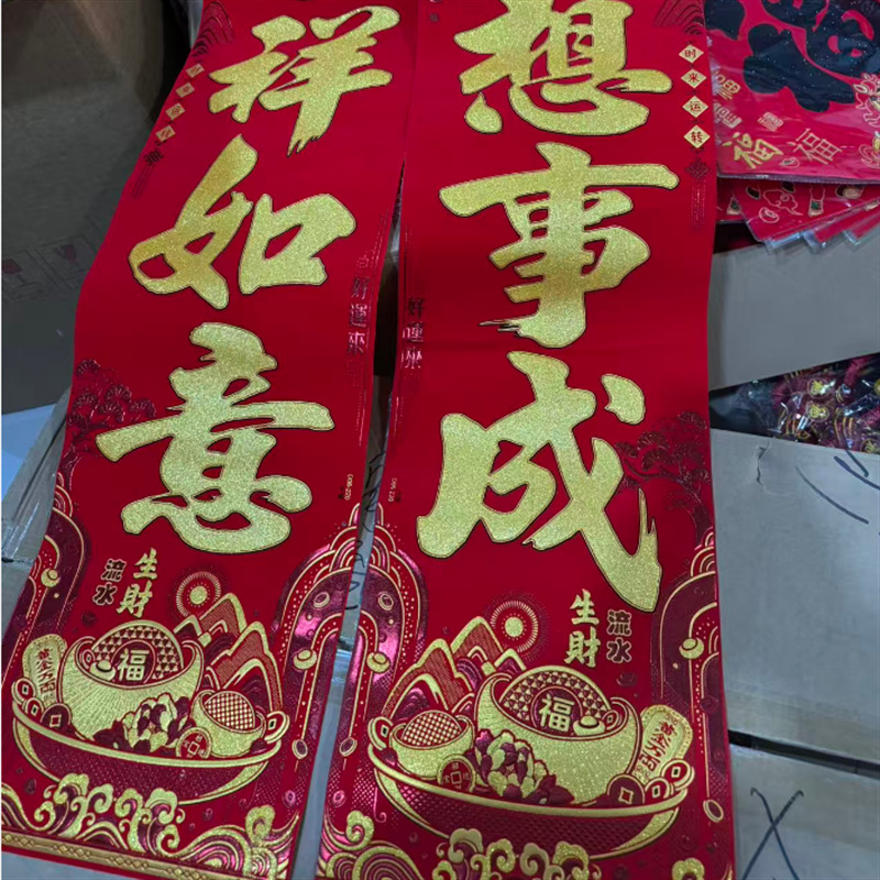 新款高档植绒全背胶烫金金粉对联洒金自粘贴春联春节用品厂家批发