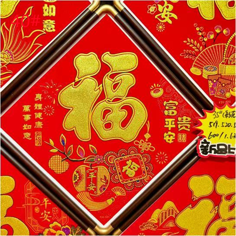 ベルベット製の春節用対聯、全面粘着タイプで、住宅街の建物に春節の雰囲気をさらに高め、金粉や発泡金粉で装飾。