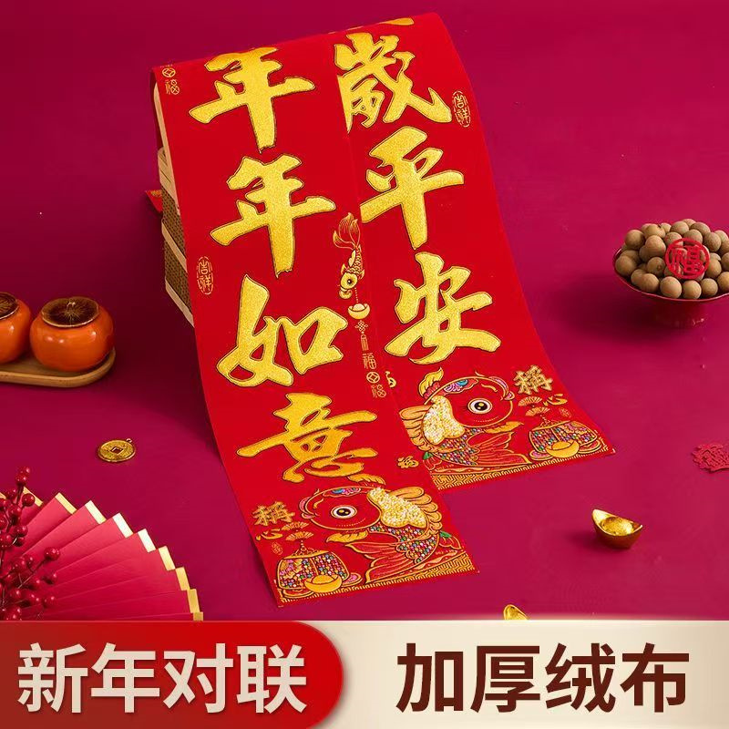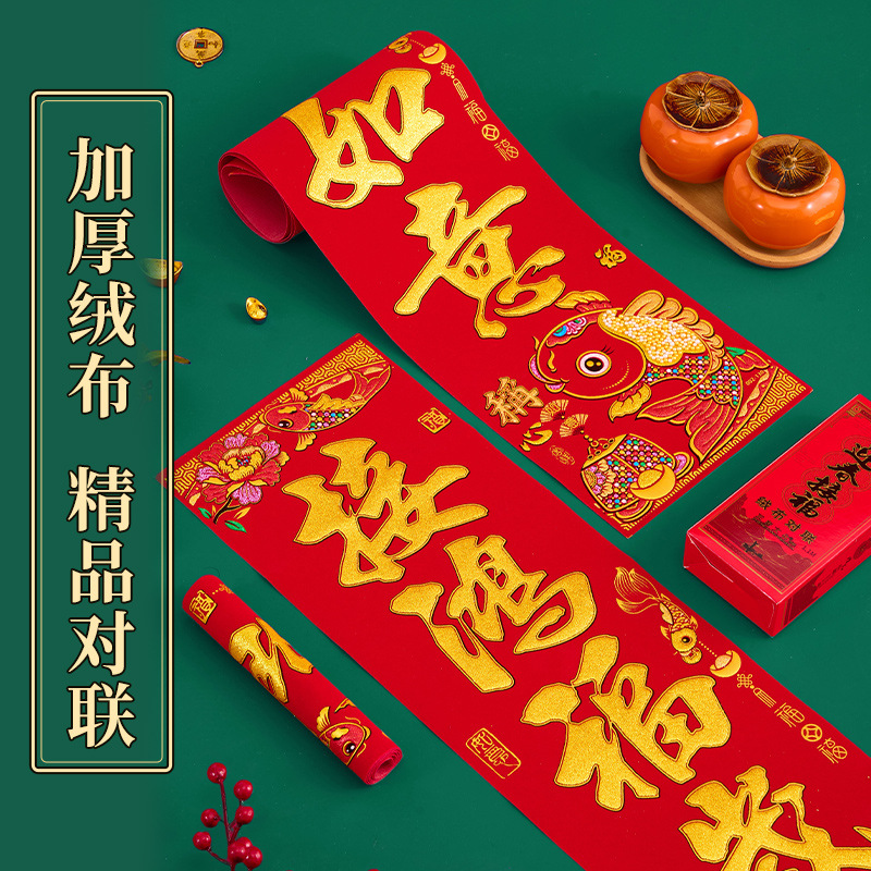 正唐加厚绒布对联全背胶自粘马年春联盒装珍珠玉富贵称心鱼意门贴
