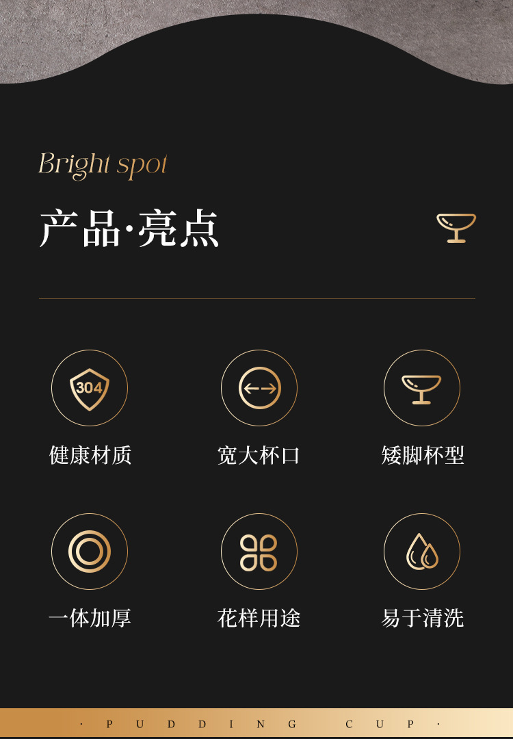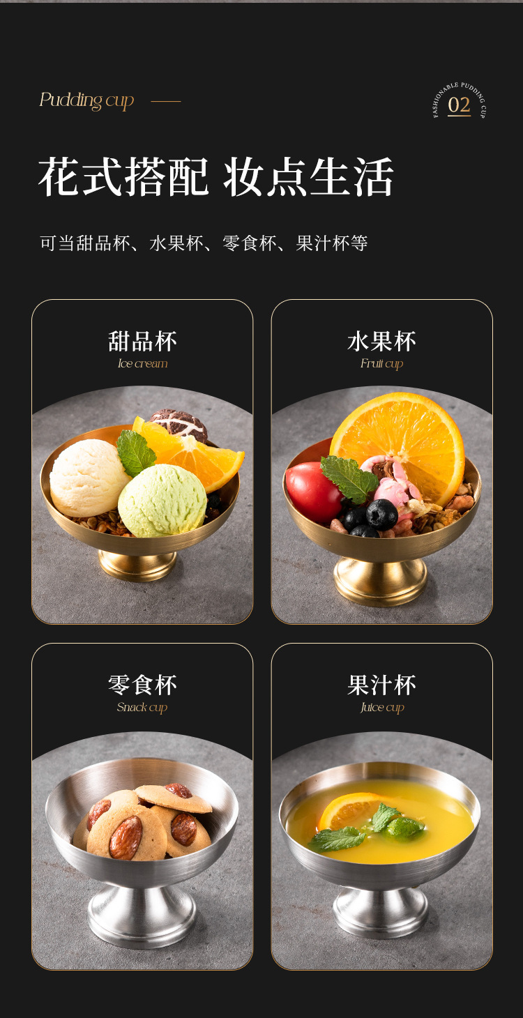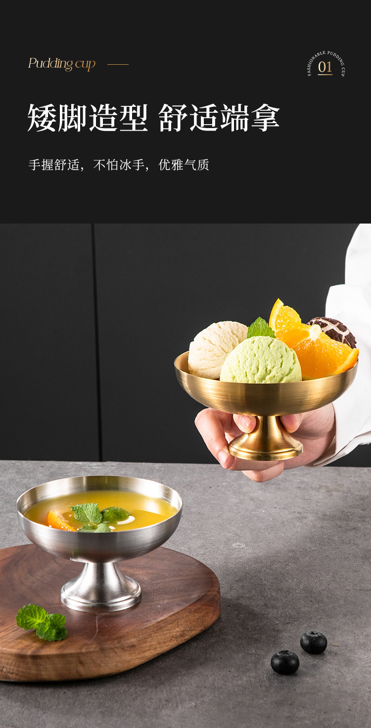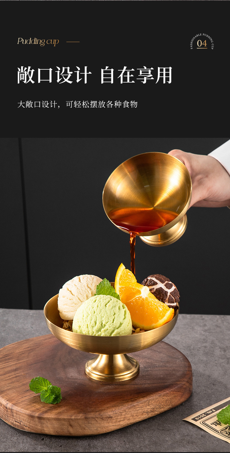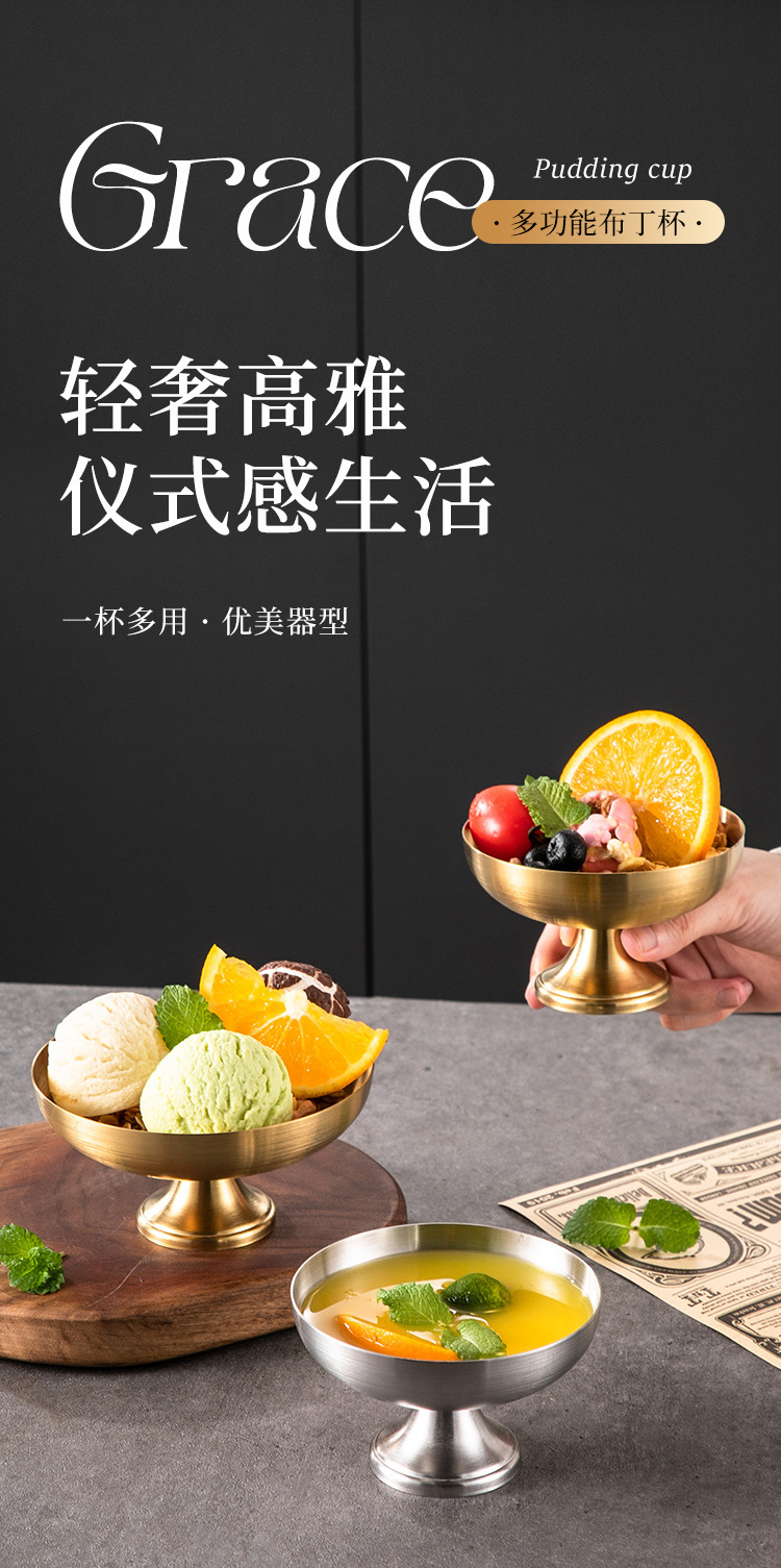跨境雪糕杯不锈钢布丁杯冰淇淋杯甜品盘蛋糕盘创意金属ins高脚杯