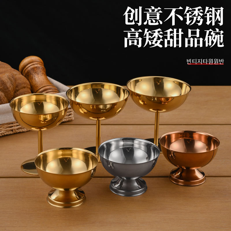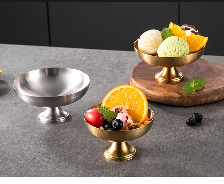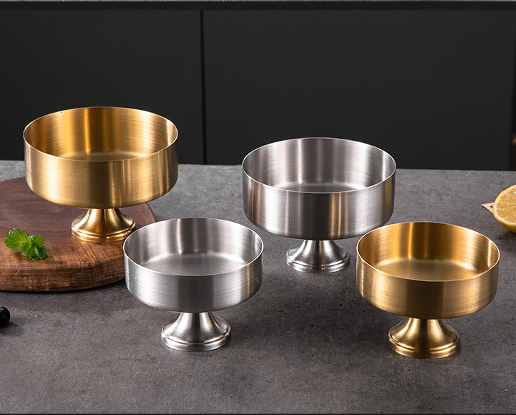 国境を越えたホテルレストランゴブレットステンレス鋼サラダボウルデザートボウルアイスクリームカップアイスクリームカップフルーツボウルゴールデン