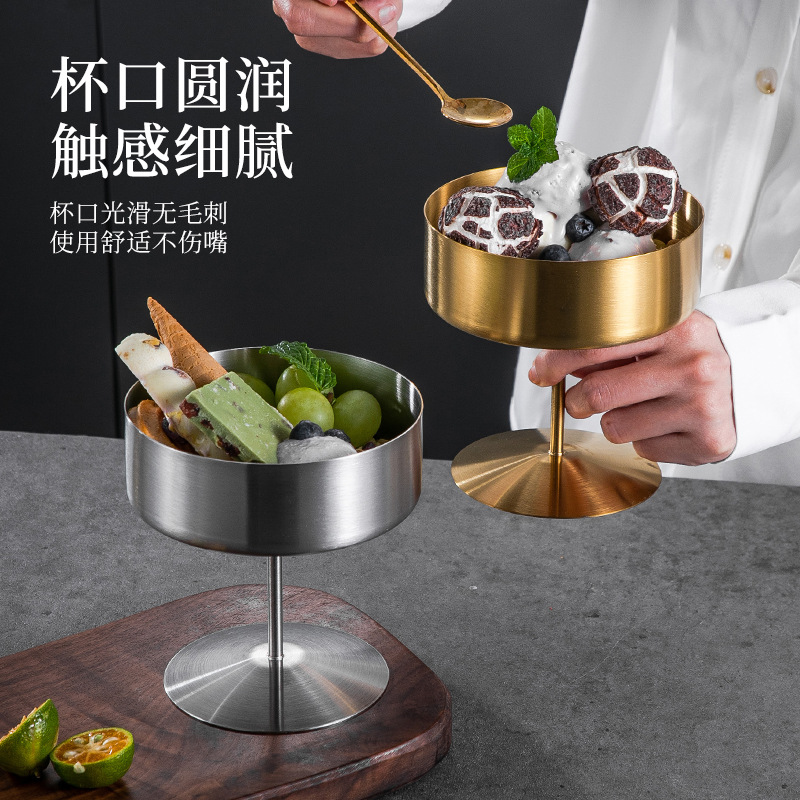 布丁杯冰淇淋杯雪糕杯304不锈钢高脚杯调酒杯雪球沙拉甜品小吃碗