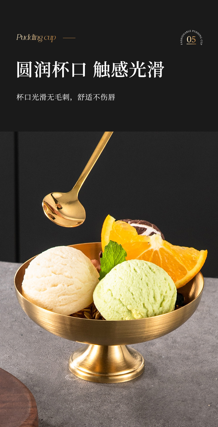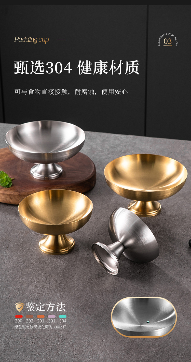 跨境供应304不锈钢雪糕碗 ins高脚冰淇淋杯创意甜品布丁杯小吃杯