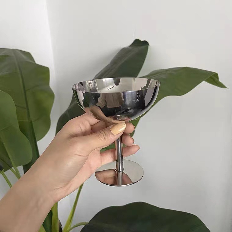 不锈钢高脚杯鸡尾酒洋酒杯雪糕杯家用甜品碗摆拍不锈钢冰激凌碗