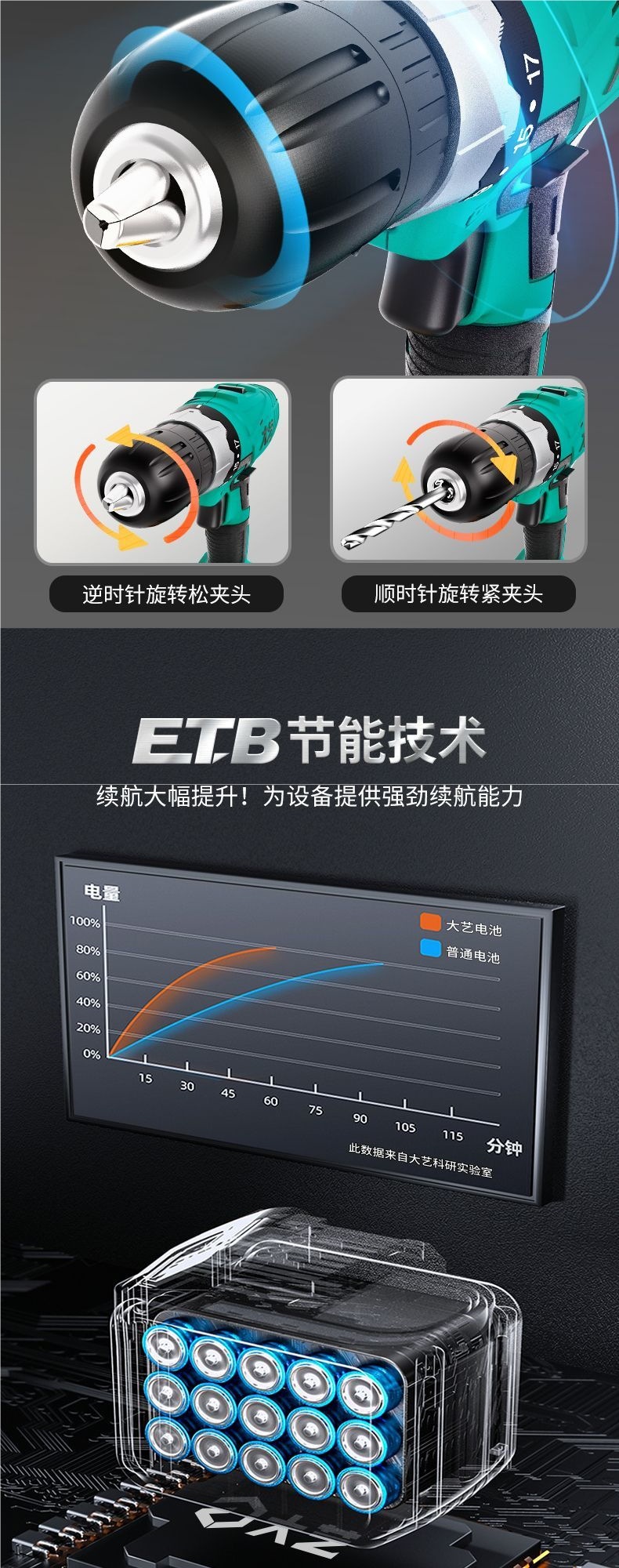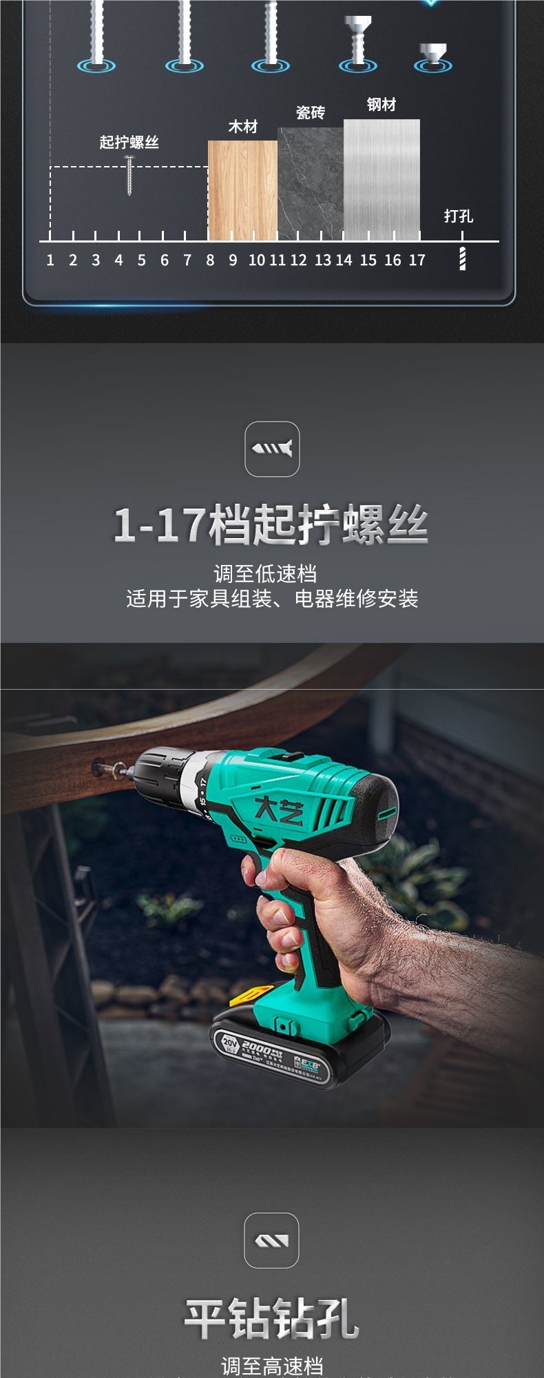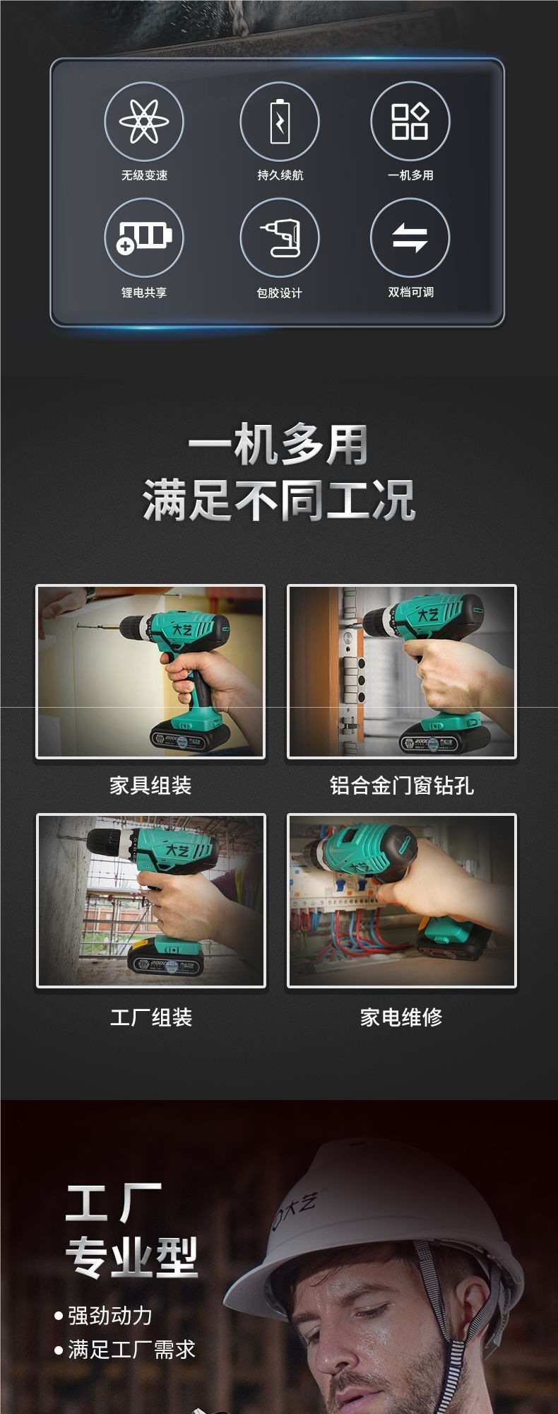 大艺原装正品充电式电钻家用锂电双速大扭矩充电钻多功能手电钻有