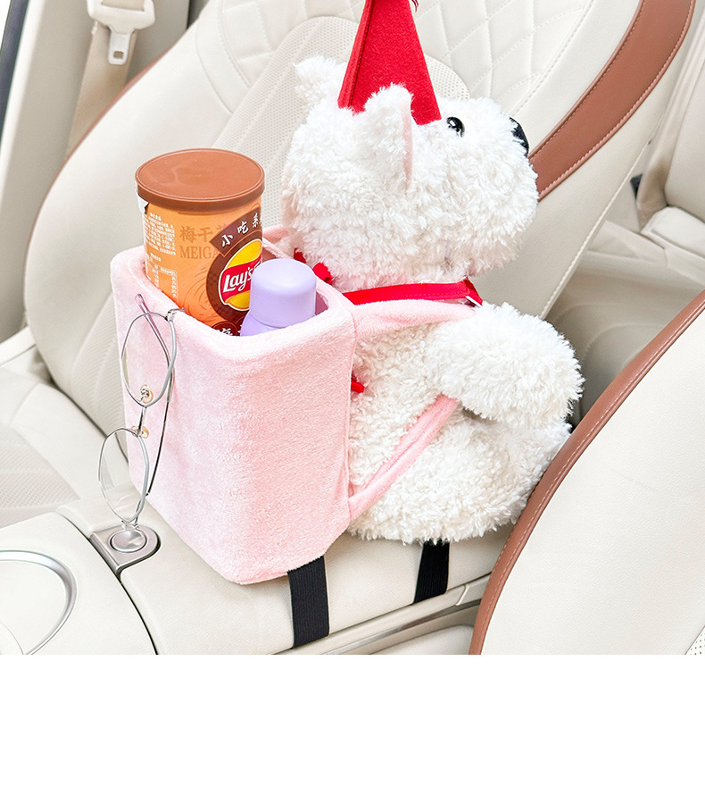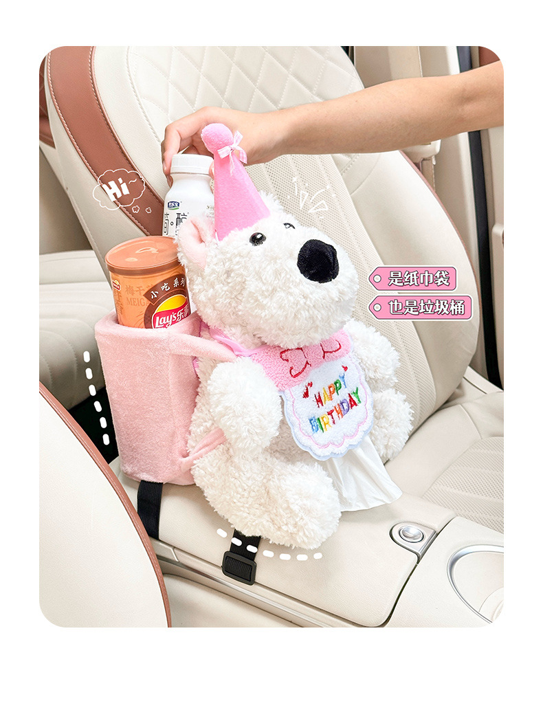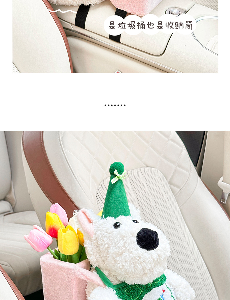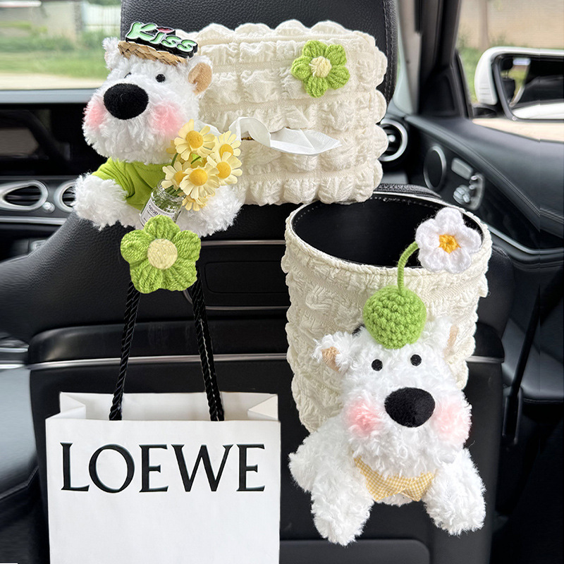 车载纸巾盒卡通西高地公仔2025新款网红高级感车内挂钩垃圾桶套装