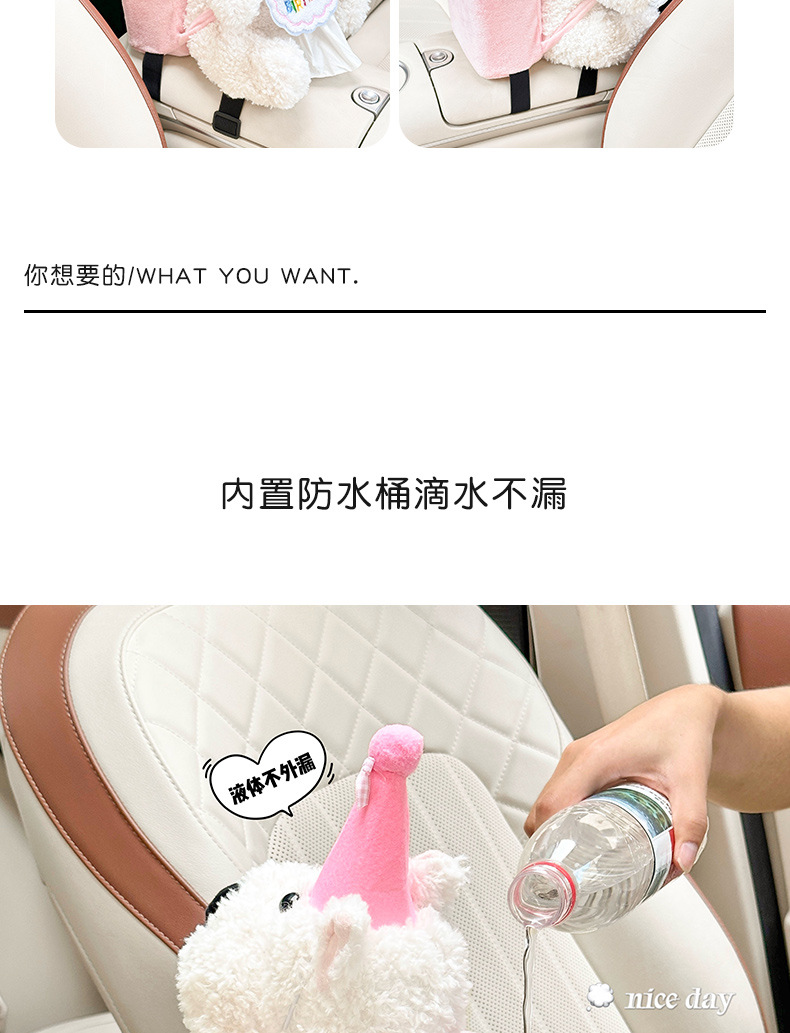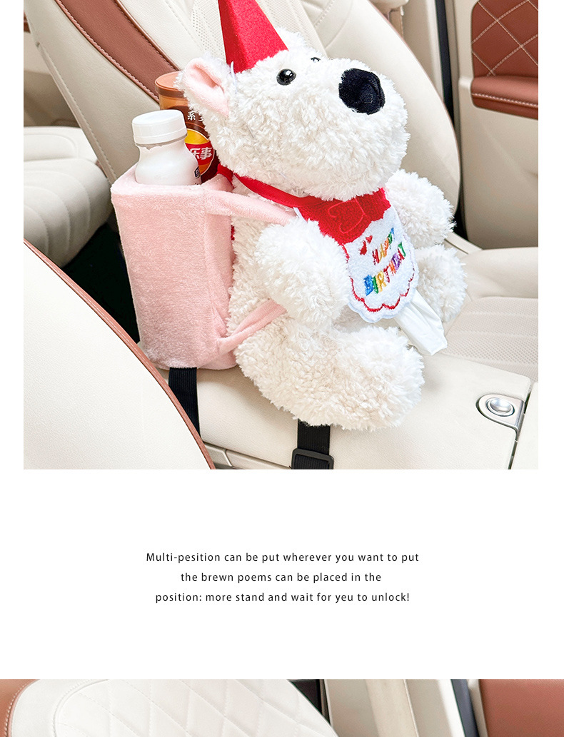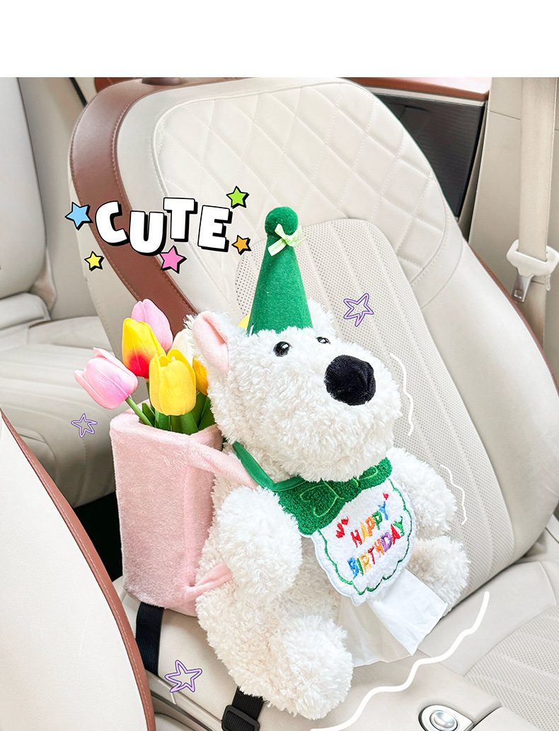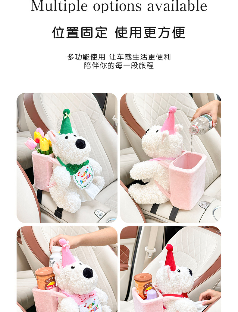 车载纸巾盒卡通西高地公仔2025新款网红高级感车内挂钩垃圾桶套装