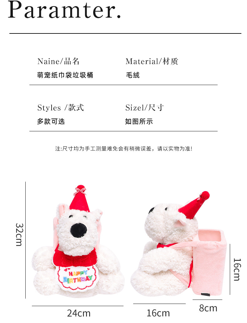型号 红色西高地纸巾袋+垃圾桶,粉色西高地纸巾袋+垃圾桶,绿色西高地纸巾袋+垃圾桶