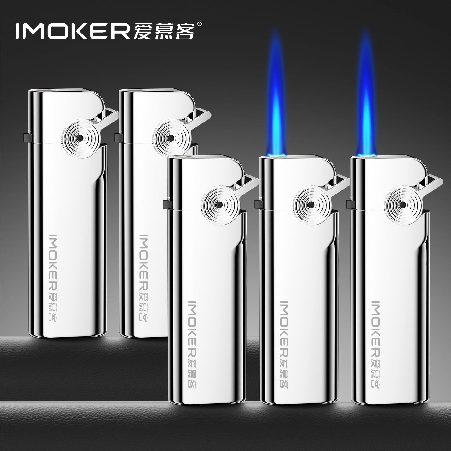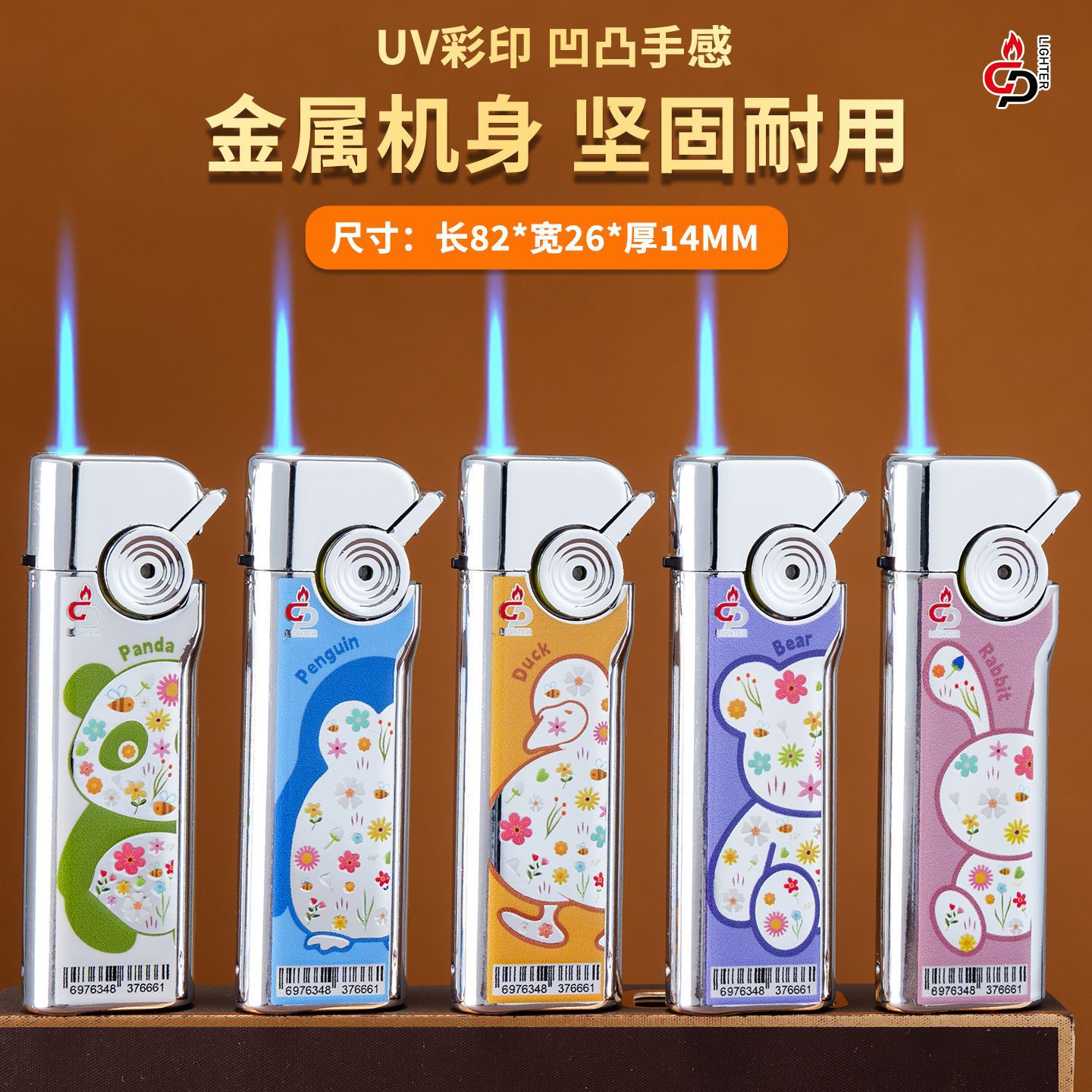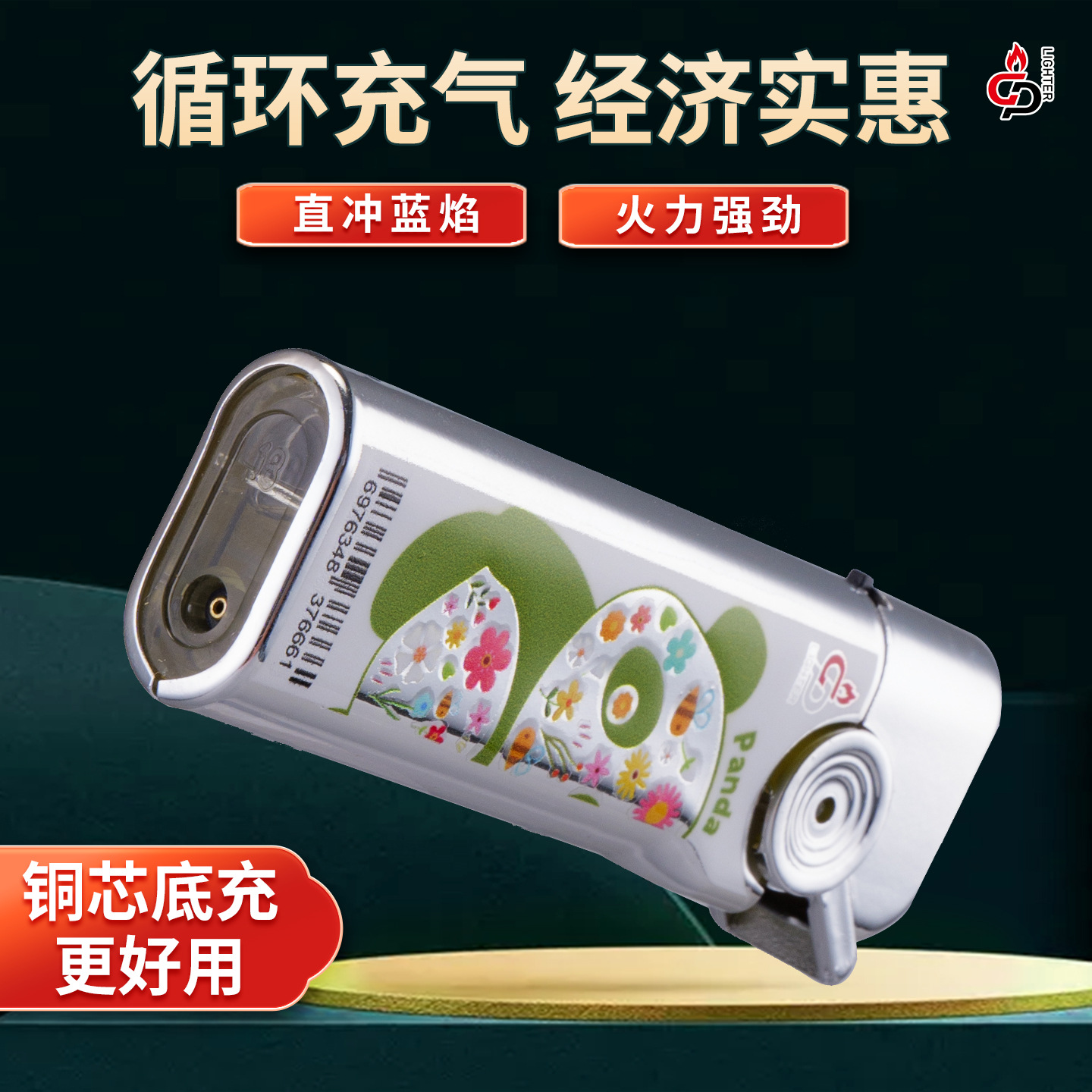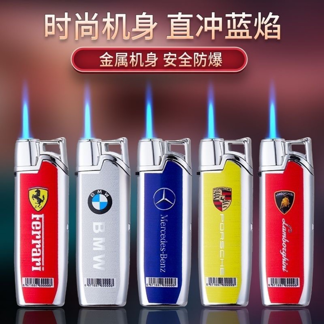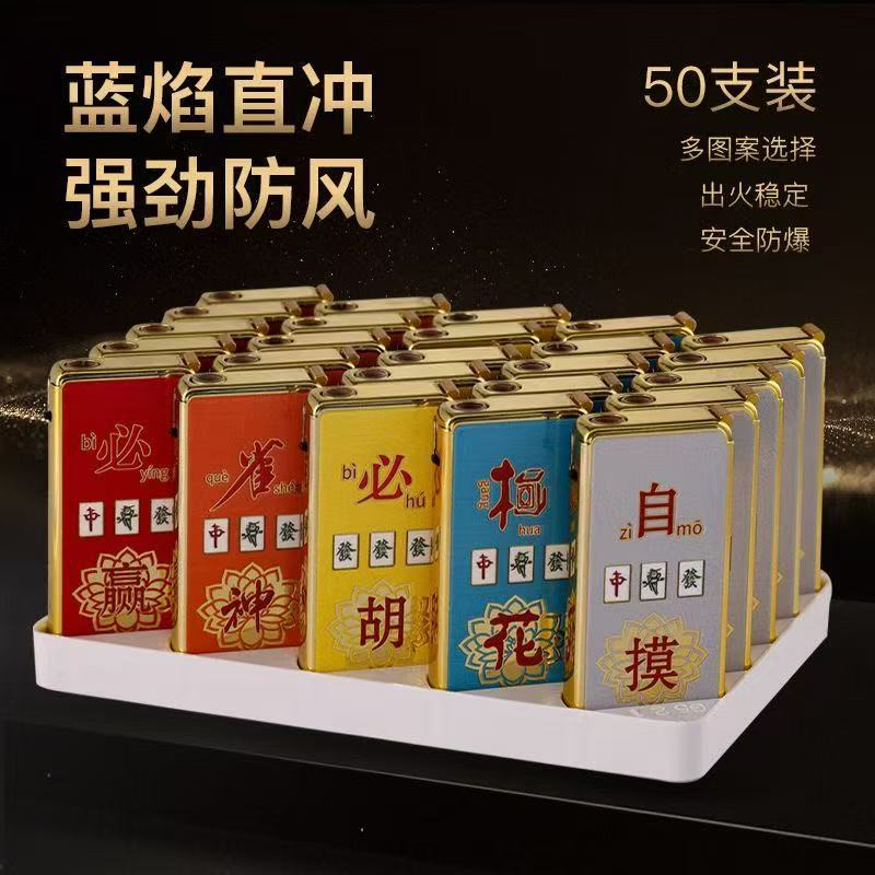批发价50支创意打火机防风新款耐用金属充气商超广告蓝焰直冲