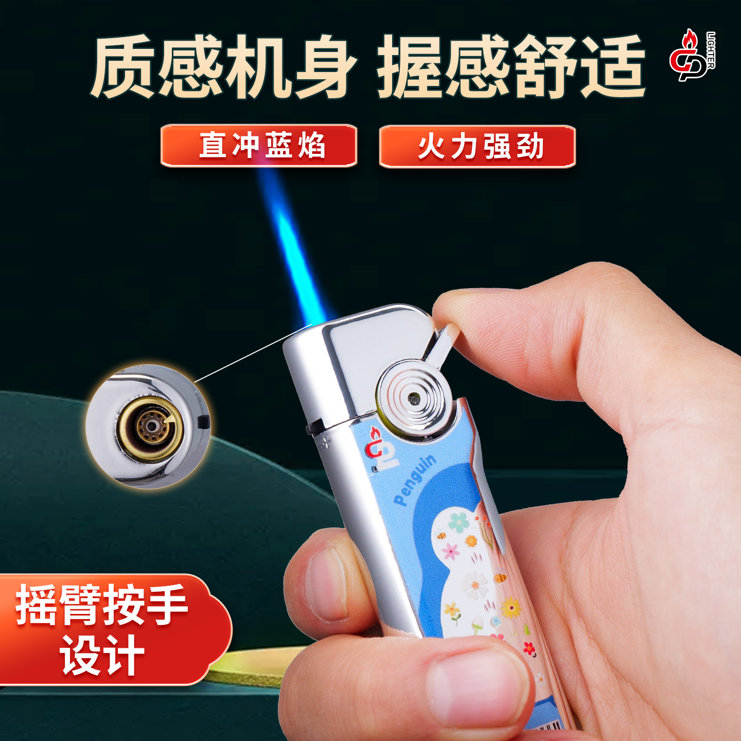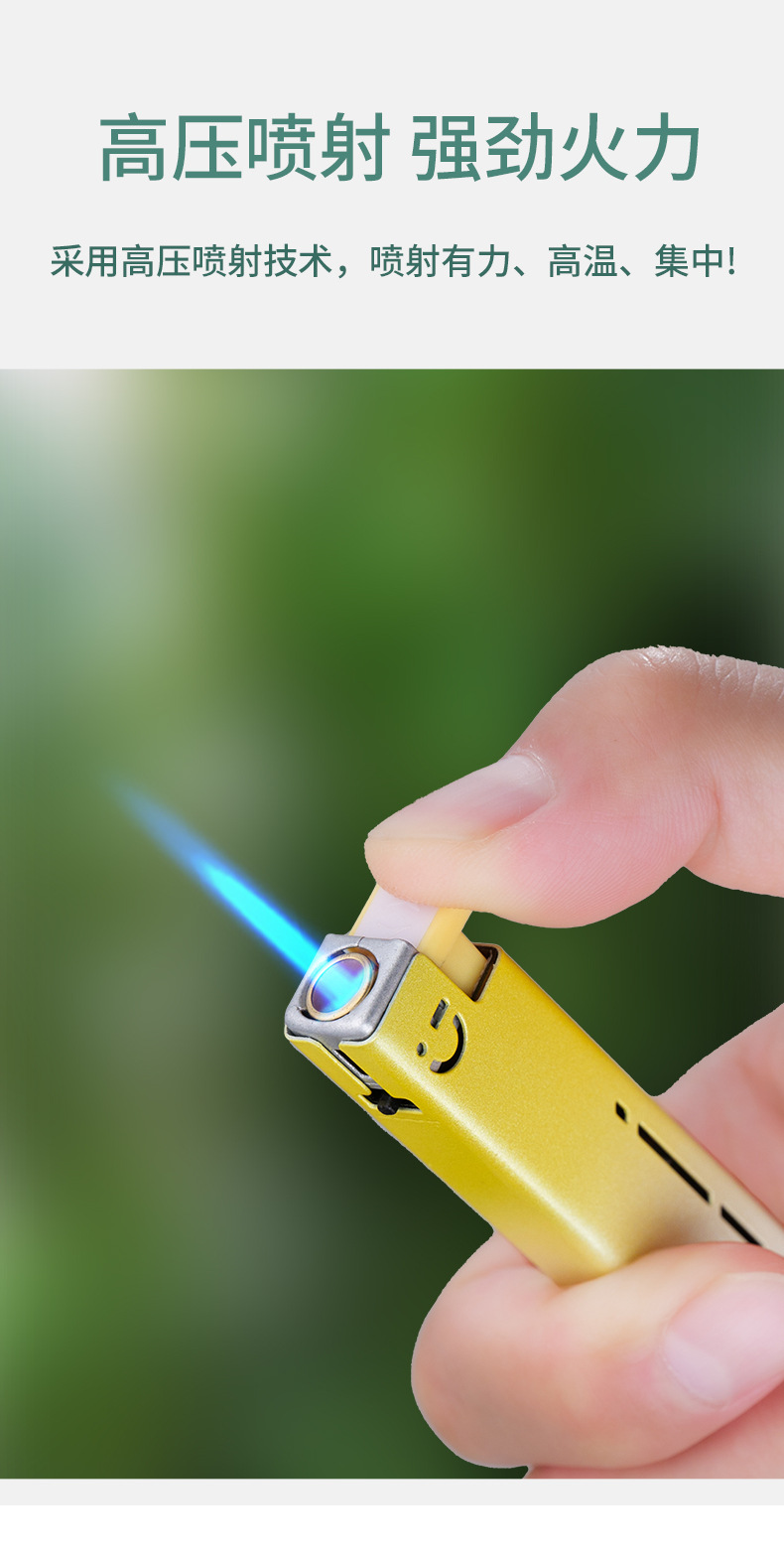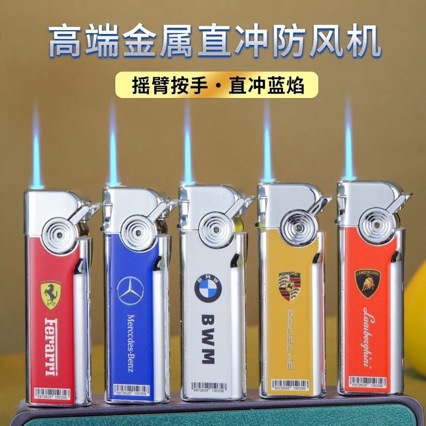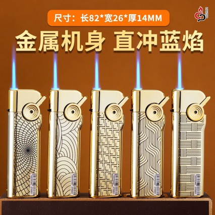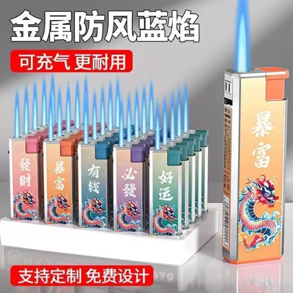 网红新款金属蓝焰国潮直冲打火机充气防风耐用批发超市家用个性