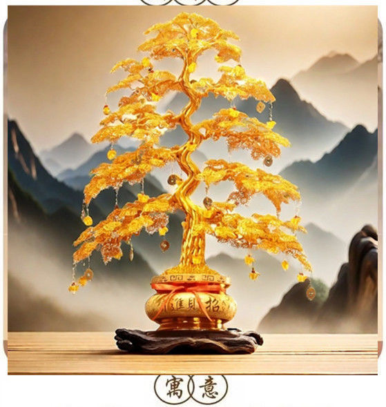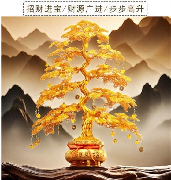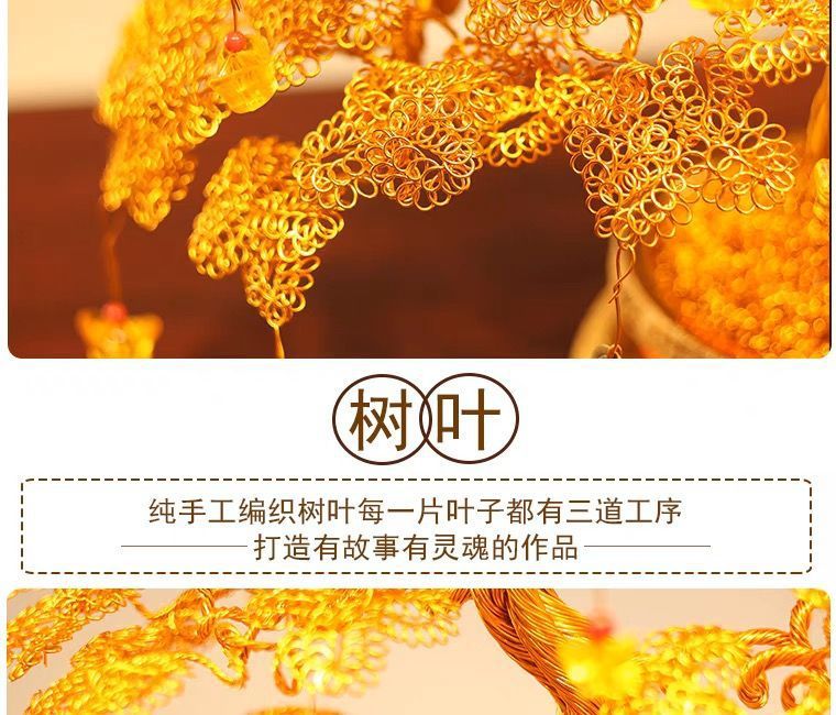 金黄色风水摆件开业乔迁客厅招财发财树摆件礼物装饰摇钱树家居