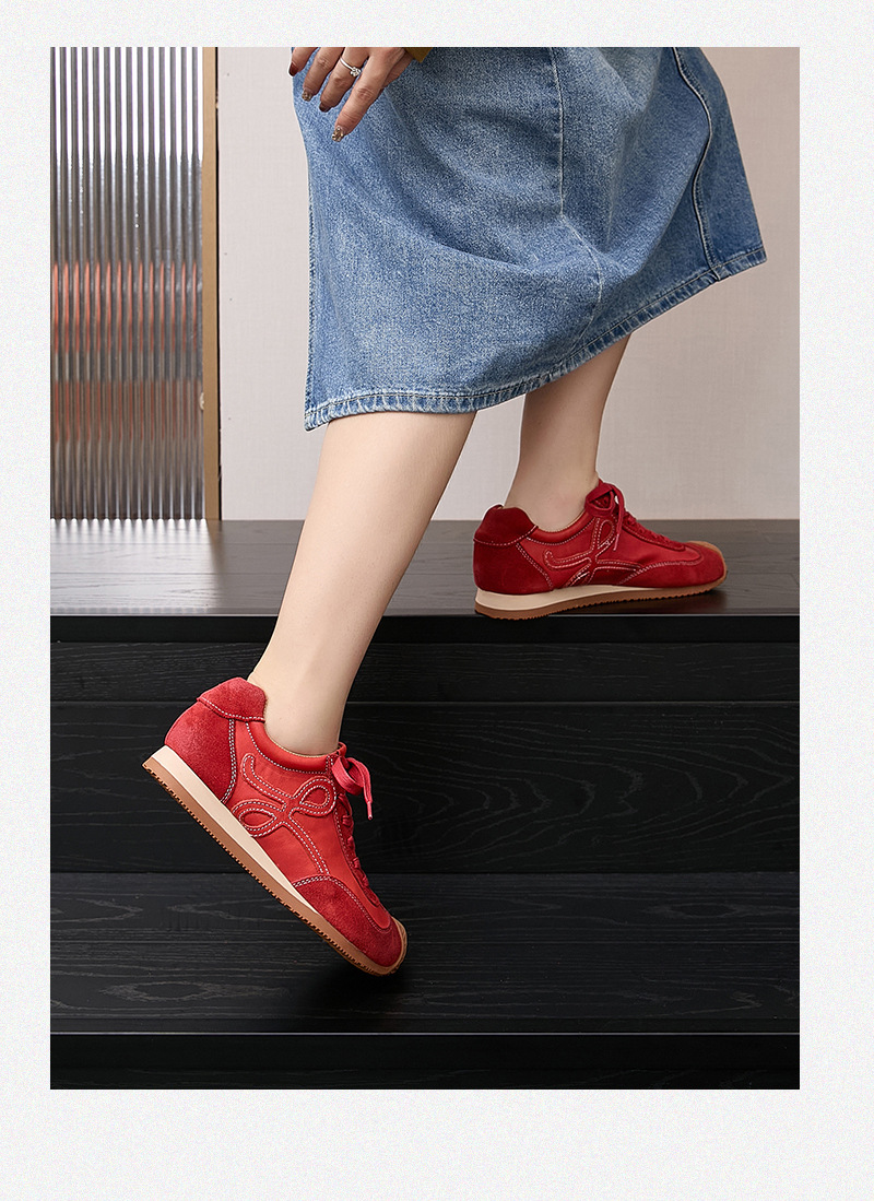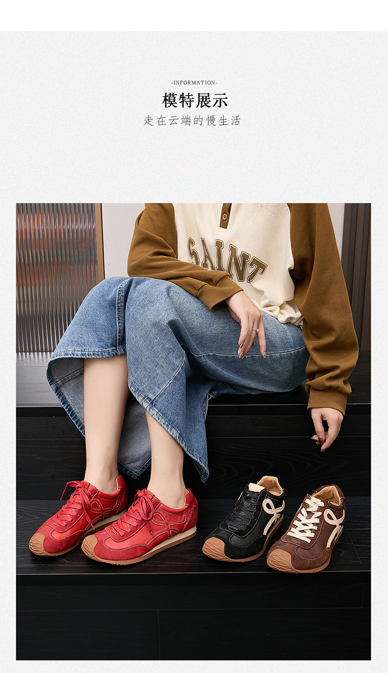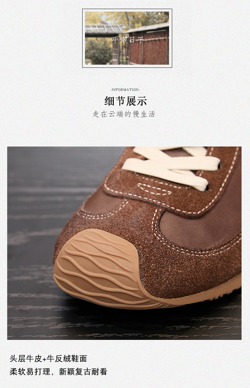 真皮软底内增高阿甘鞋女2025新款羊皮里复古百搭德训鞋运动休闲鞋