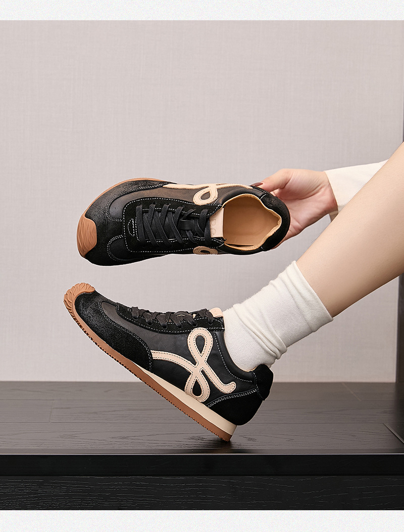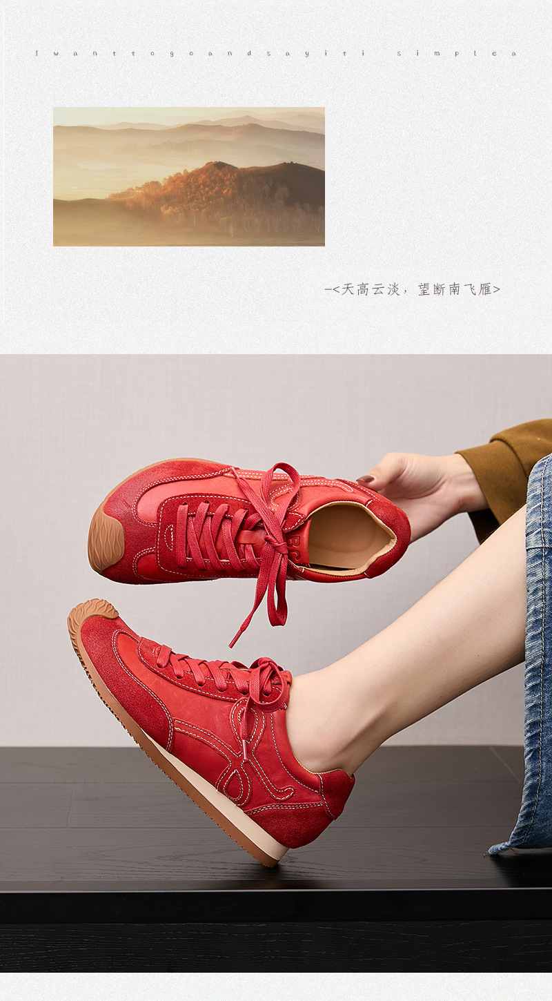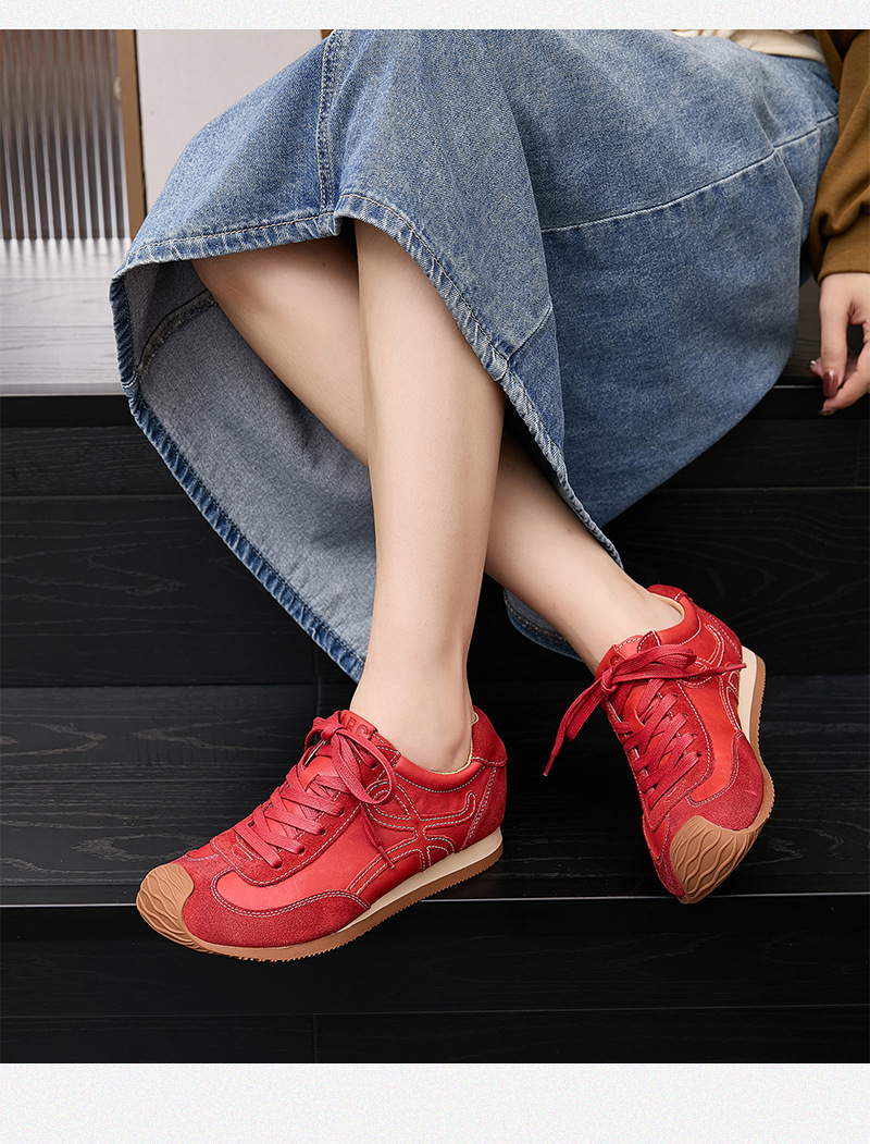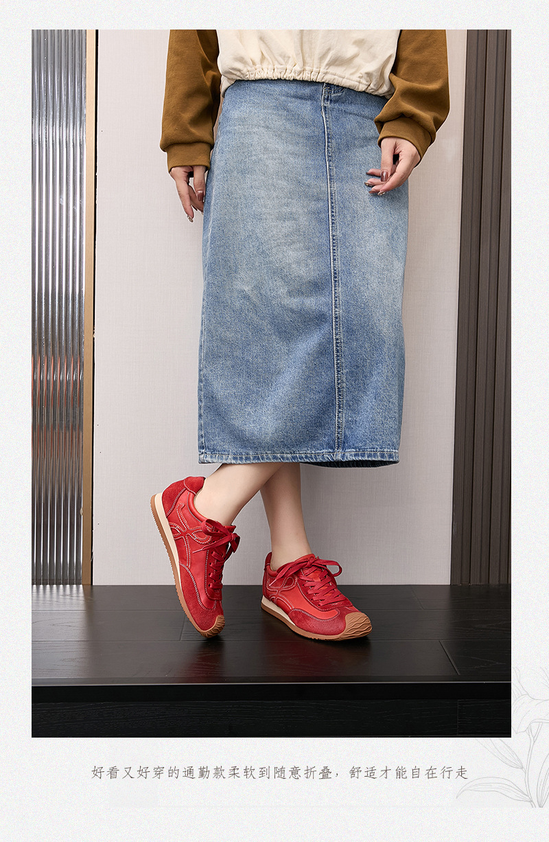 真皮软底内增高阿甘鞋女2025新款羊皮里复古百搭德训鞋运动休闲鞋