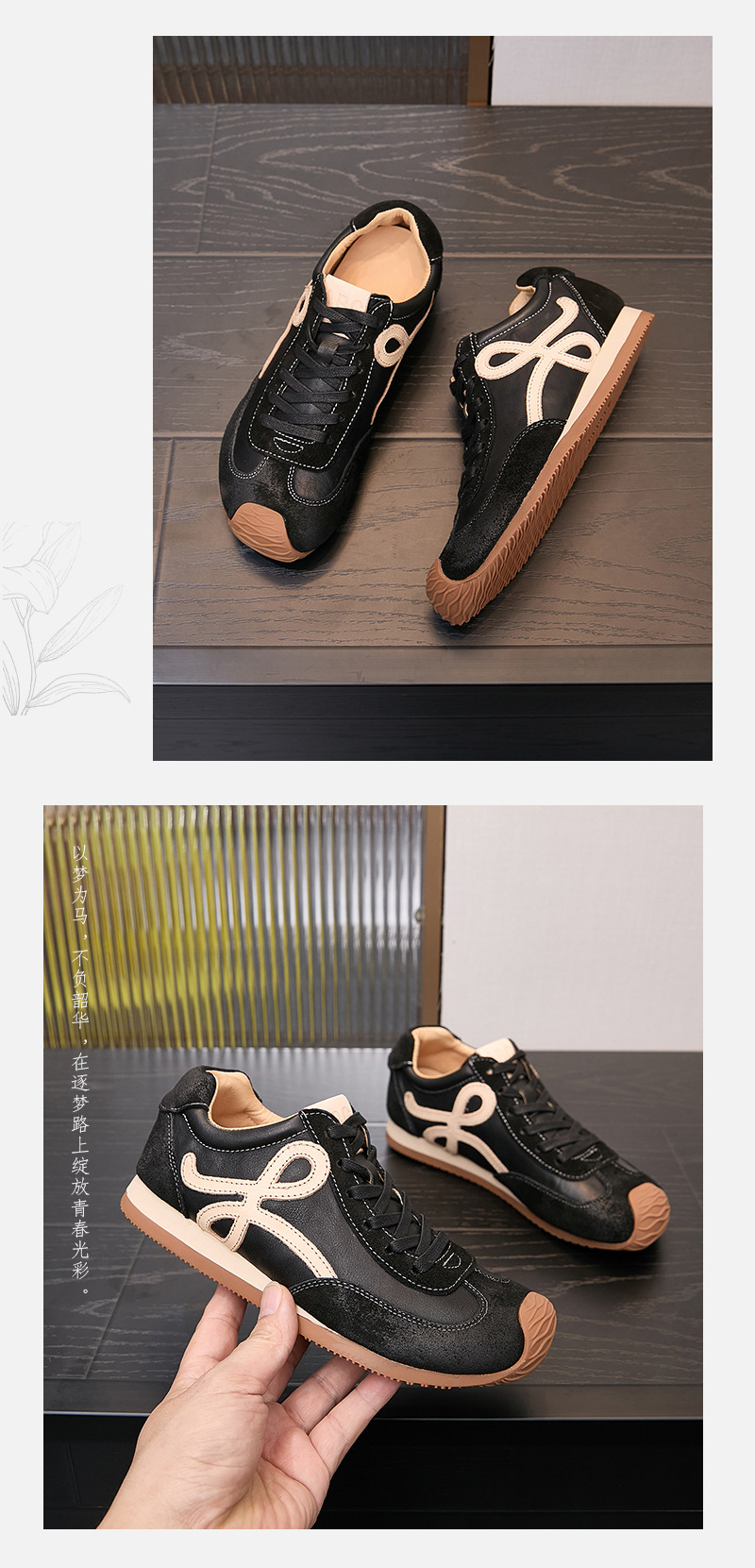 复古水洗小牛皮做旧德训鞋男款透气阿甘鞋时尚百搭休闲运动鞋
