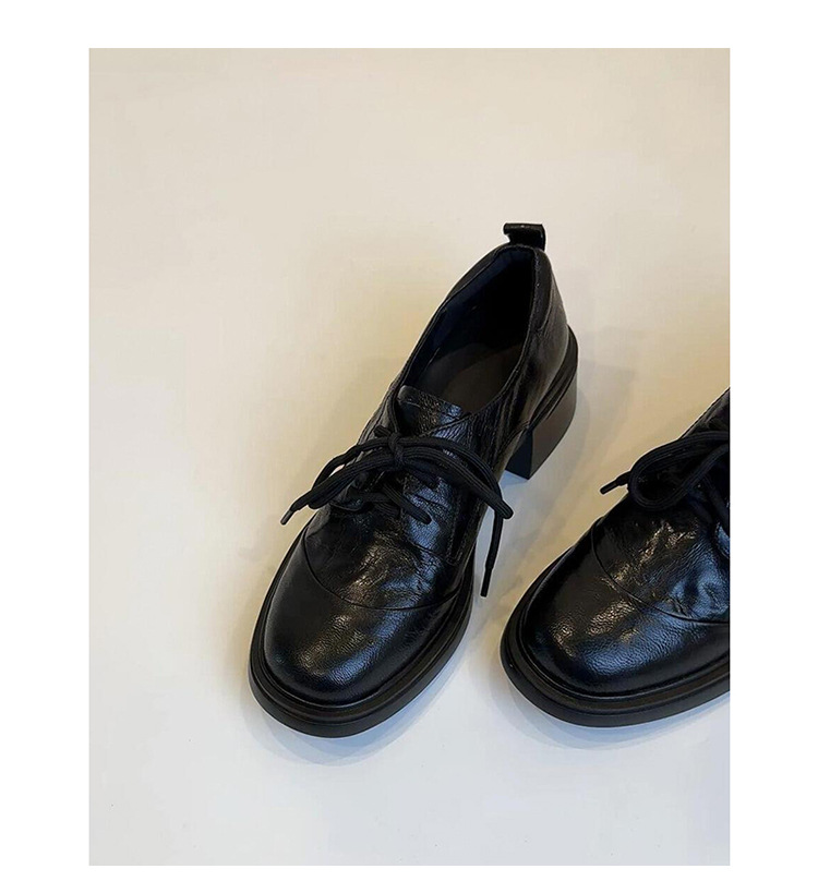 牛皮版~英伦复古软皮圆头系带乐福鞋通勤百搭粗跟小皮鞋女单鞋
