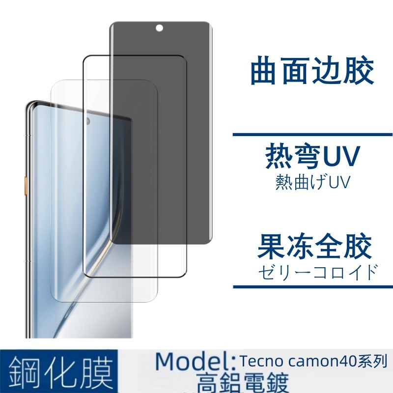 適用伝音camon40強化膜UVサイドゴム全画面覗き見防止膜40pro金属鷹眼透明レンズ膜