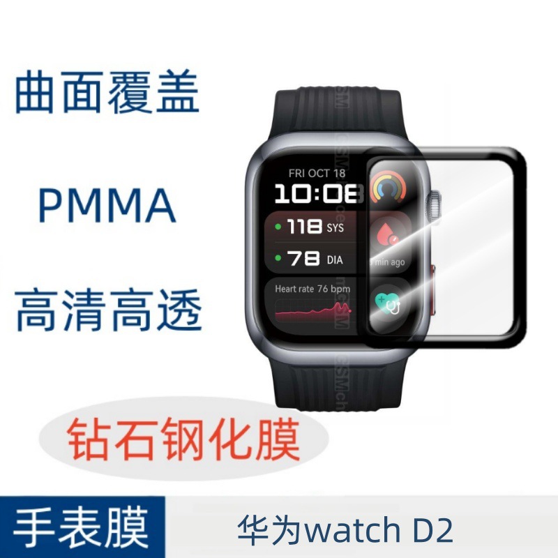 適用華為watchD2腕時計膜曲面腕時計軟膜PMMA複合材料全ゴム被覆ガラス膜
