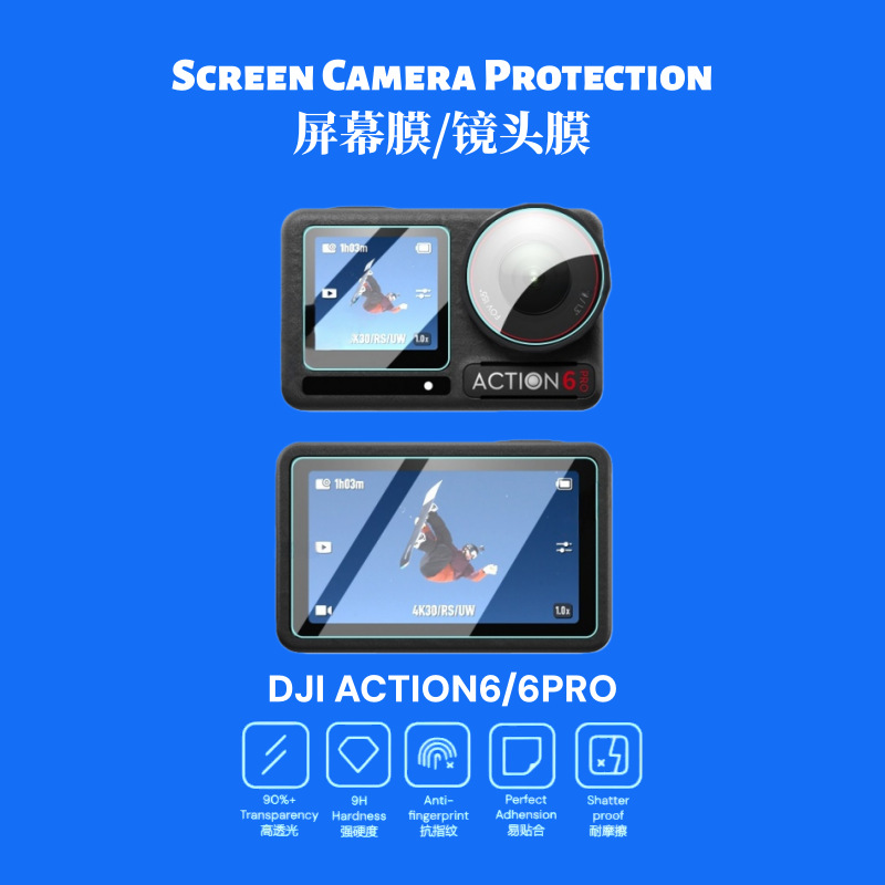 适用DJI大疆action6pro屏幕镜头膜AR运动AF相机5兔笼4玻璃钢化膜