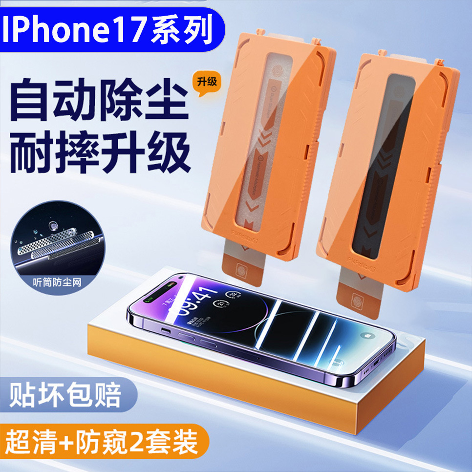 适用IPhone17Promax无尘仓钢化膜苹果17系列贴膜神器秒贴防窥膜