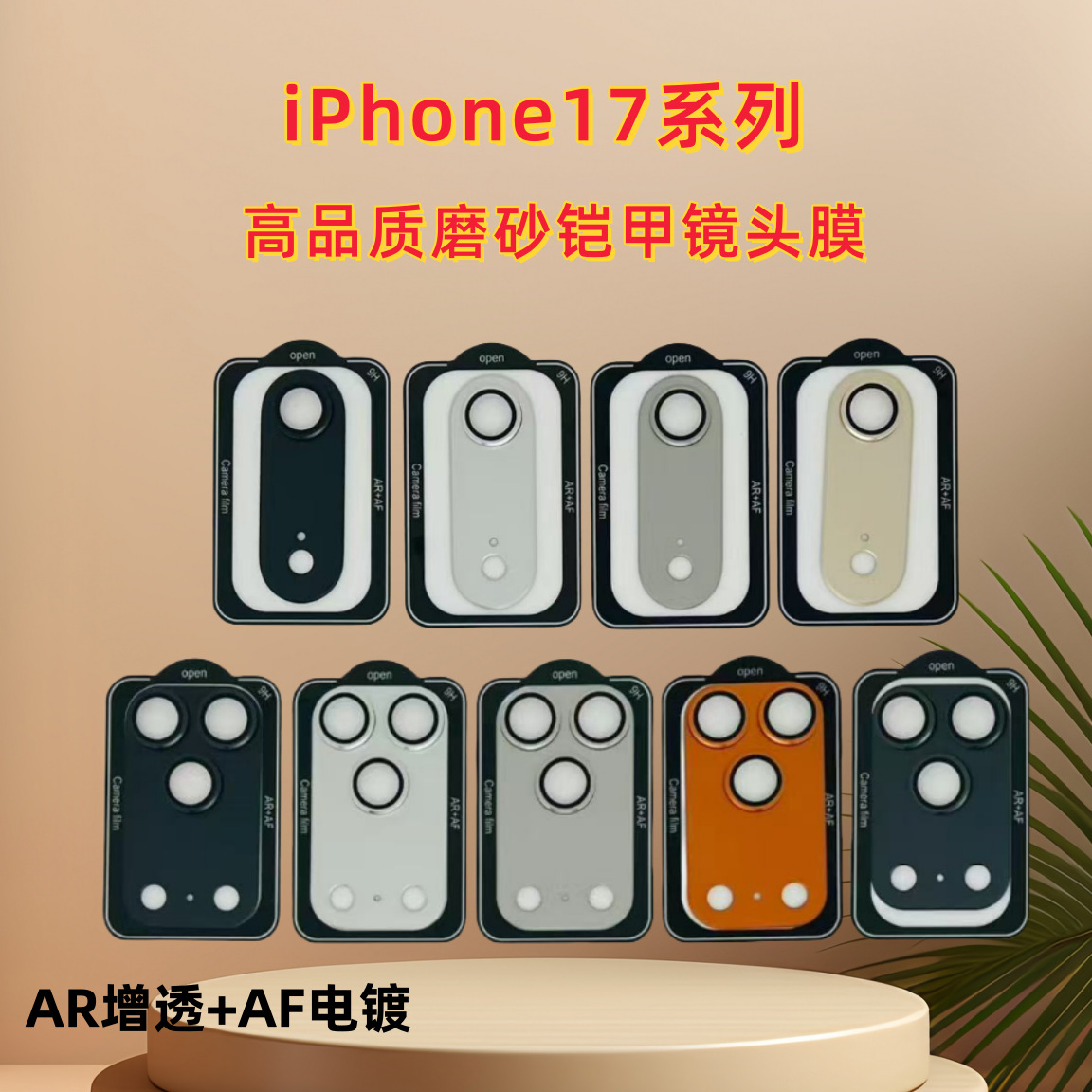 iPhone17用マットレンズフィルム、Apple 17promax用メタルアーマー一体型レンズフィルム、強化ガラスフィルム