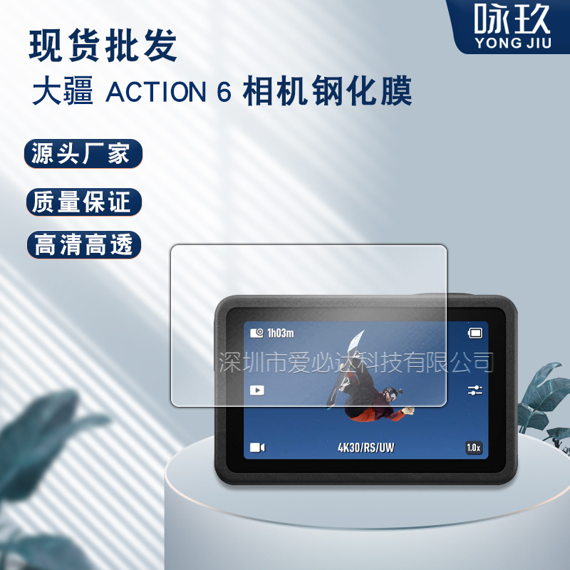 适用DJI大疆action6pro全景相机屏幕保护配件高清增透玻璃钢化膜