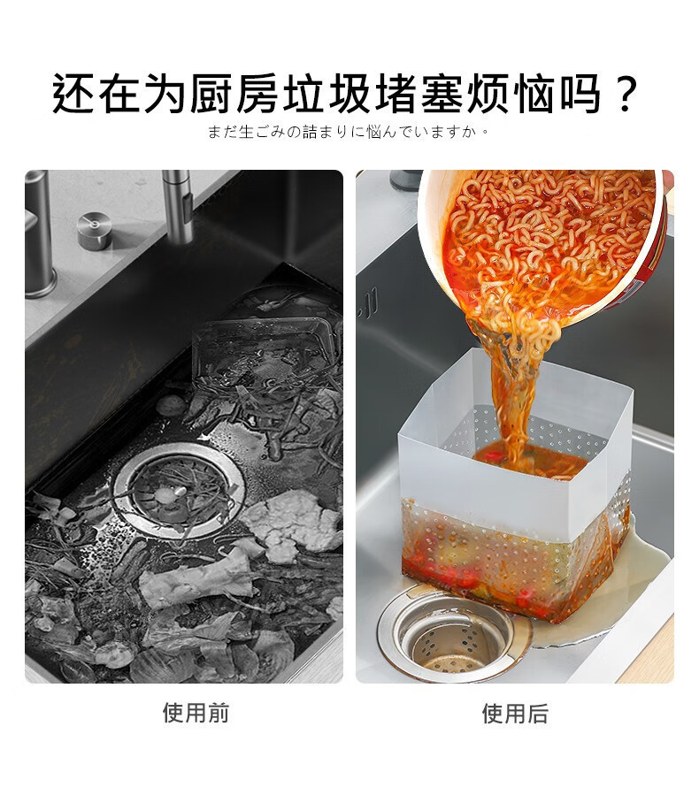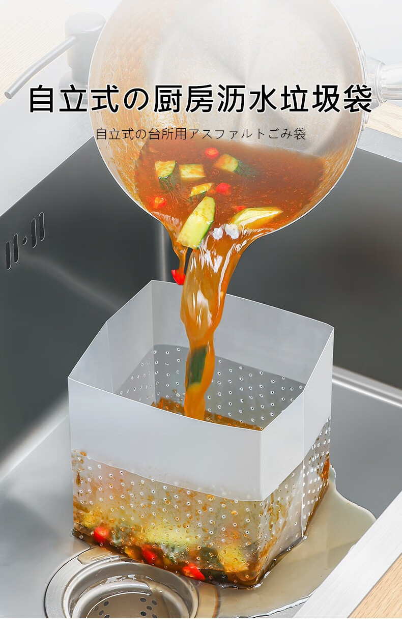 ゴミ袋水切り袋台所自立式フィルター残渣使い捨て水槽水切り袋を厚くして目詰まりを防止する