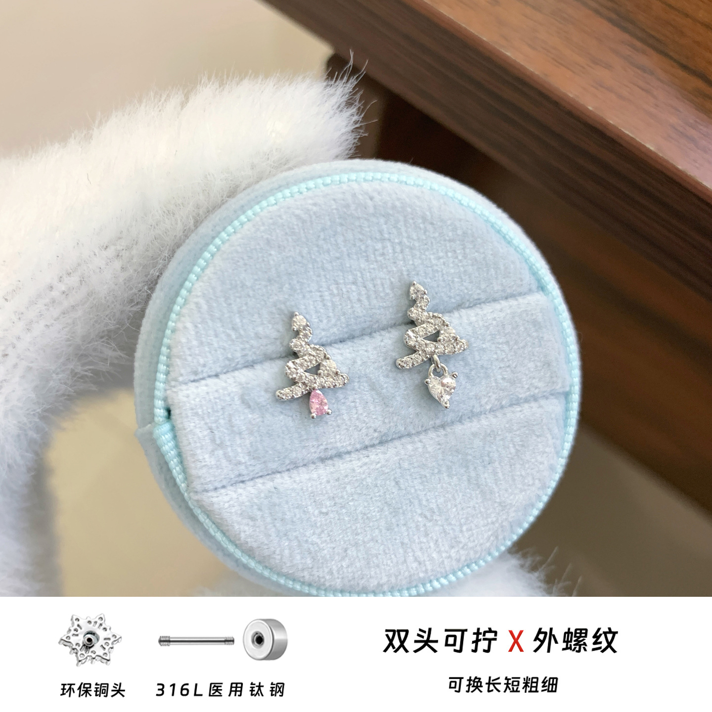 316L医用钛钢圣诞树耳骨钉甜美氛围感耳钉精致设计感养耳洞耳饰