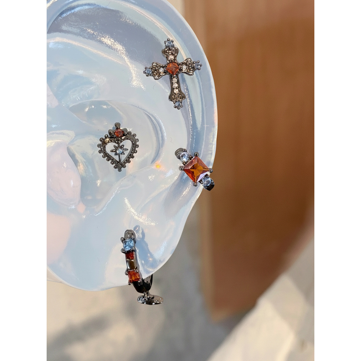 316L医用钛钢枪黑系组合耳骨钉爱心十字架耳钉甜酷百搭养耳洞耳饰