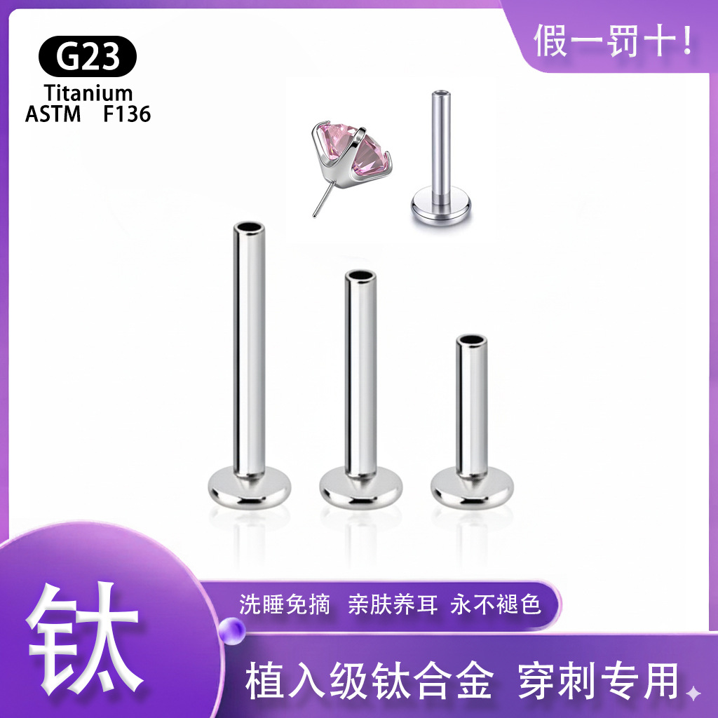 G23植入钛耳钉螺纹底座饰品女穿刺替换杆舌钉唇钉首饰底杆批发